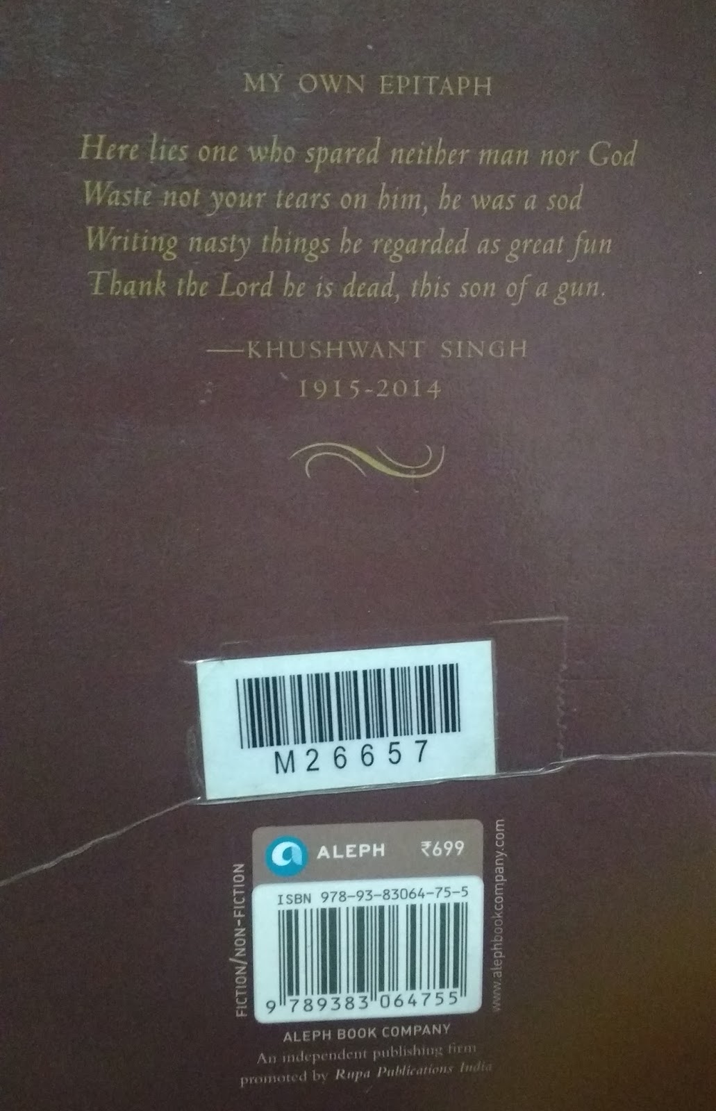 आता खुशवंतसिंगांची एखादी कादंबरीच वाचून बघितली पाहिजे मग कळेल की त्यांच्याबरोबर बरोबर सूत जुळतंय का नाही. सध्यातरी हे पुस्तक वाचन इथेच थांबवतोय.