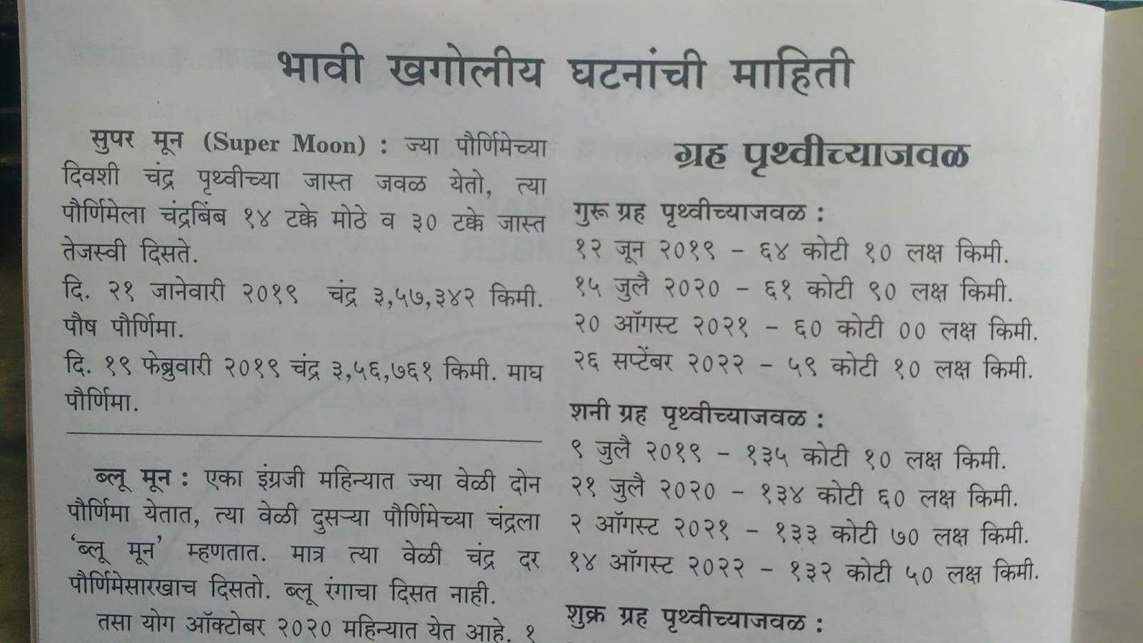 ५) भावी खगोलीय घटनांच्या तारखा -उदा. सुपरमून, ब्लू मून, ग्रह पृथ्वीच्या जवळ