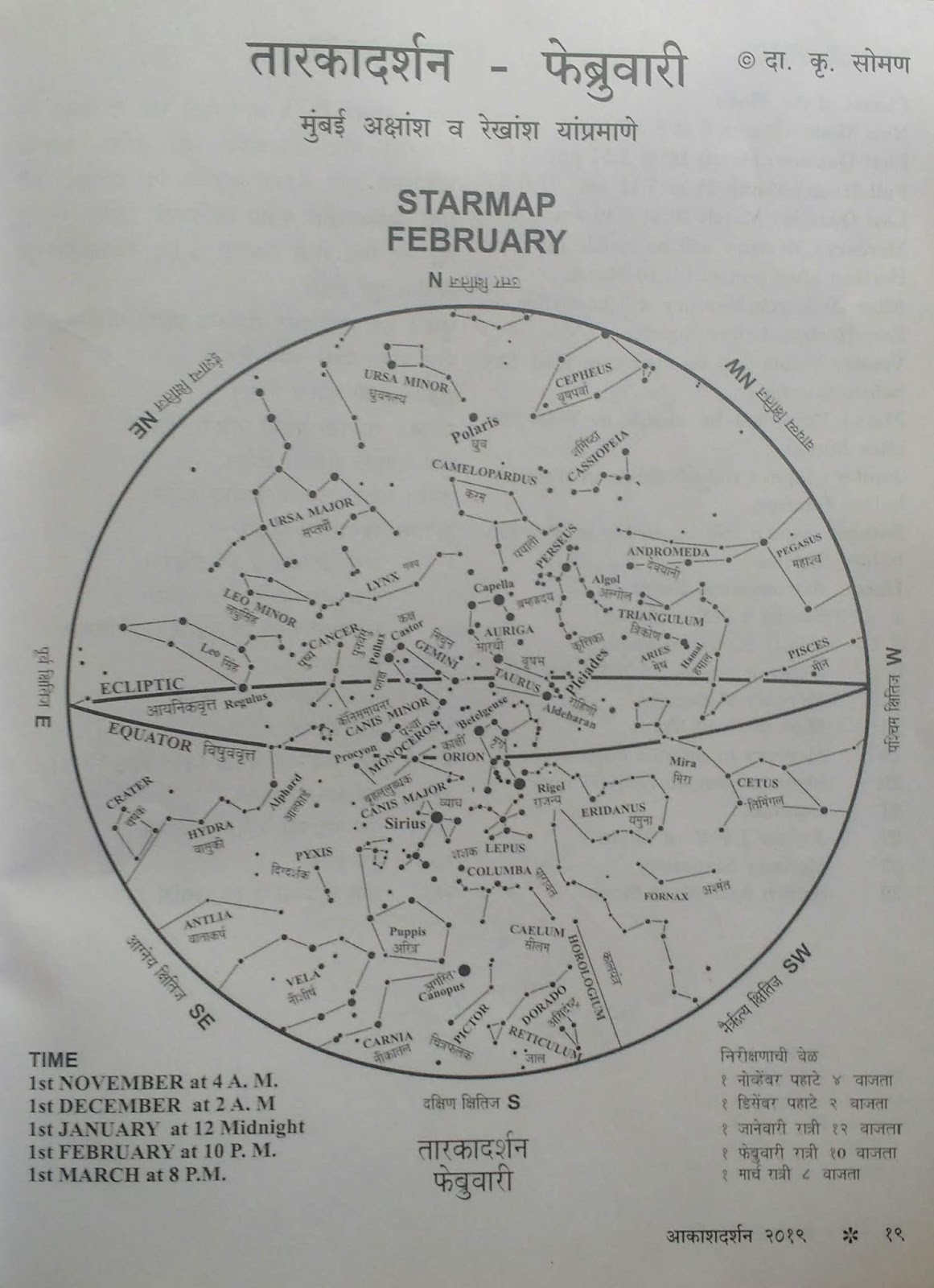 पुढील प्रमाणे प्रत्येक महिन्याचे आकाशदर्शन :-
