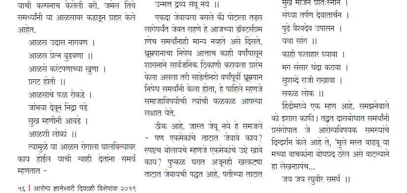दिवाळी अंक : आरोग्य ज्ञानेश्वरी दिवाळी अंक २०१९