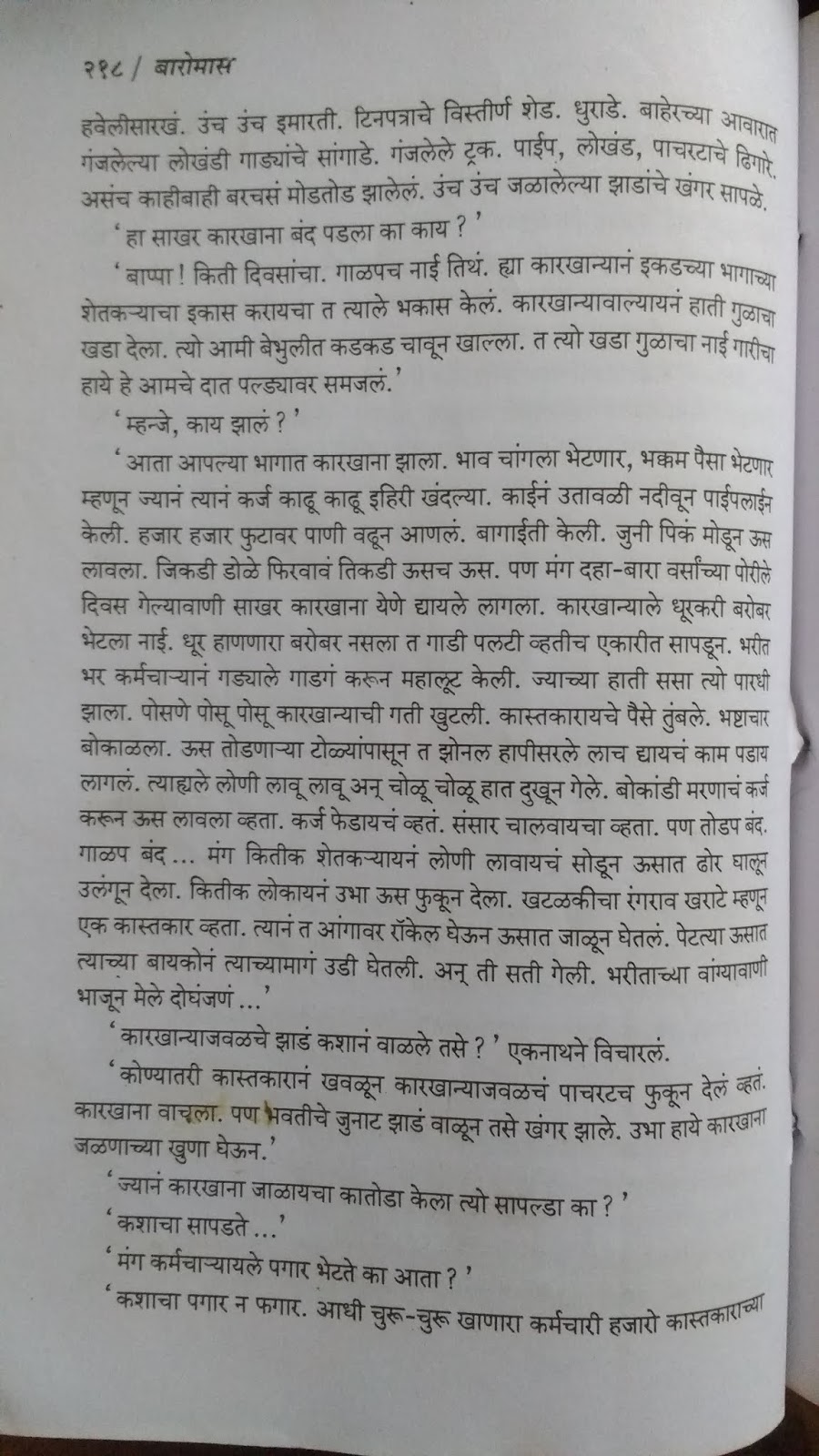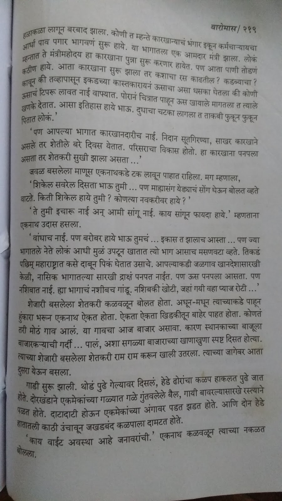 अन्नदाता, बळीराजा असं म्हणून गोडगोड शब्दांत गौरवला जाणार शेतकरी प्रत्यक्षात मात्र उसासारखा चरकातून पिळला जातो आहे. आणि तो गांजून, नाईलाजाने आत्महत्या करण्याचा टोकाला का येतो हे भयाण वास्तव, कोलमडलेले अर्थशास्त्र ललित रूपात लेखकाने आपल्यासमोर मांडलं आहे. प्रत्येक सुबुद्ध व्यक्तीने हे वाचलंच पाहिजे. आणि यातून शेतकऱ्याला बाहेर काढण्यासाठी काय करता येईल ते केलं पाहिजे. तरच या वाचनाला काही अर्थ मिळेल.