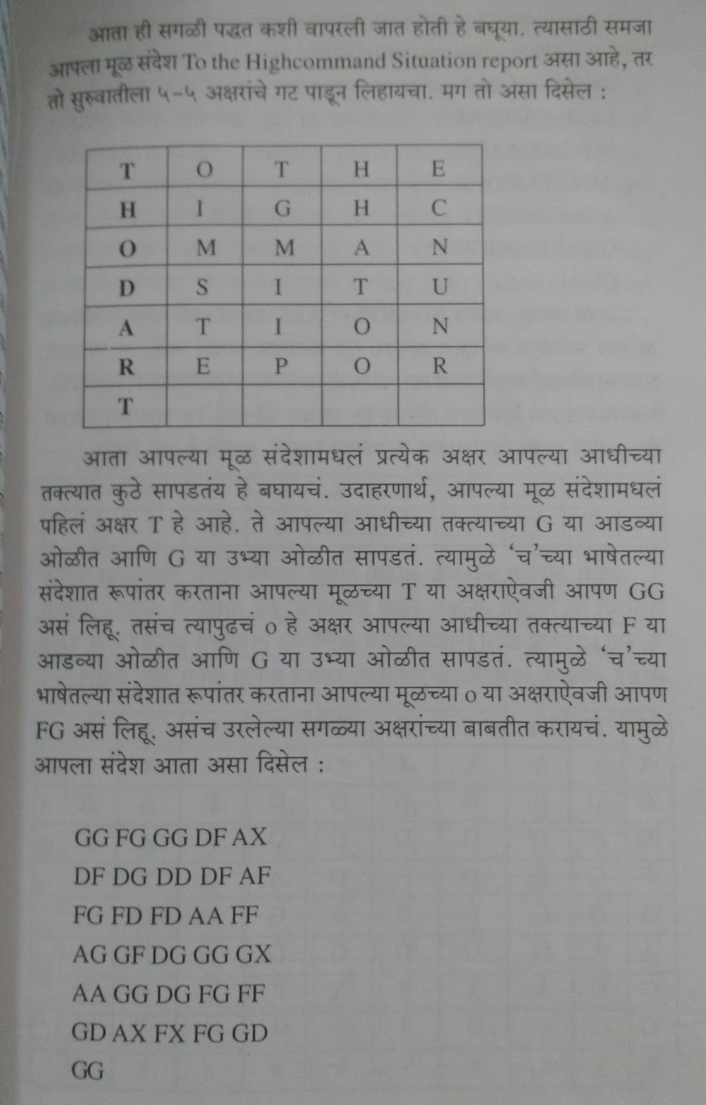 सुरुवातीच्या काळात निरोप लपवण्याकडे कल होता उदा. अदृश्य शाई ने लिहिलेला कागद, प्राण्याच्या पोटातून पाठालेला निरोप इ. याला म्हणतात “स्टॅगनोग्राफी”. पण निरोप पाठवला जात आहे हे तिऱ्हाइताला कळलं तरी किंवा प्रत्यक्षात तो निरोप हातात मिळाला तरी तो त्याला समजणार नाही अशा गूढपद्धतीने लिहिणं म्हणजे “क्रिप्टोग्राफी”. आधुनिक काळात विशेषतः दोन महायुद्धांच्या काळात या क्रिप्टोग्राफीची आवश्यकता खूप मोठ्या प्रमाणावर कशी जाणवली. या गरजेपोटी नवनवीन पद्धती कशा शोधल्या गेल्या याचं सविस्तर वर्णन पुस्तकात आहे. उदा: