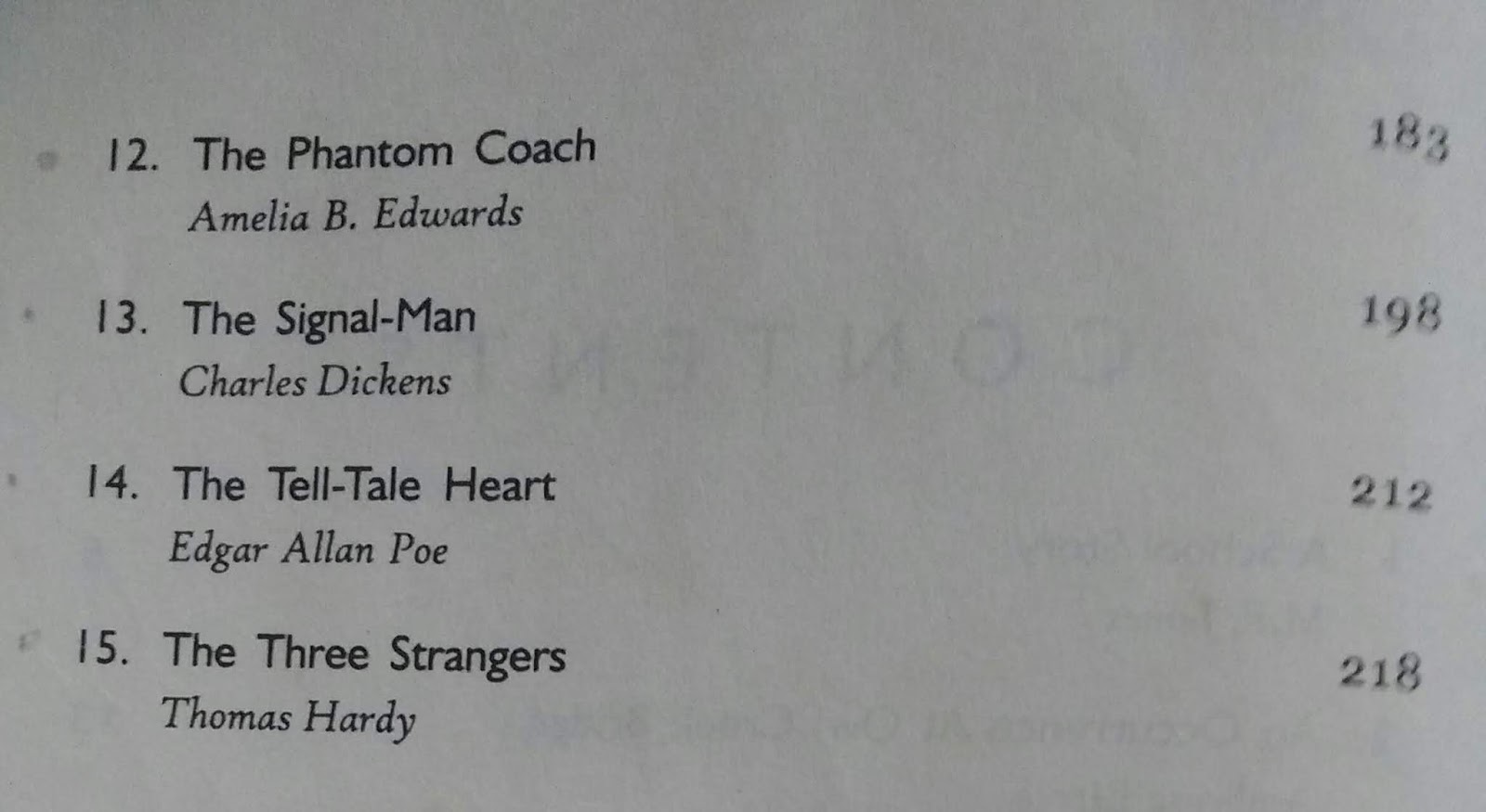 वेगवेगळ्या इंग्रजी लेखकांच्या भयकथा/भूतकथा यांचा हा संग्रह आहे.