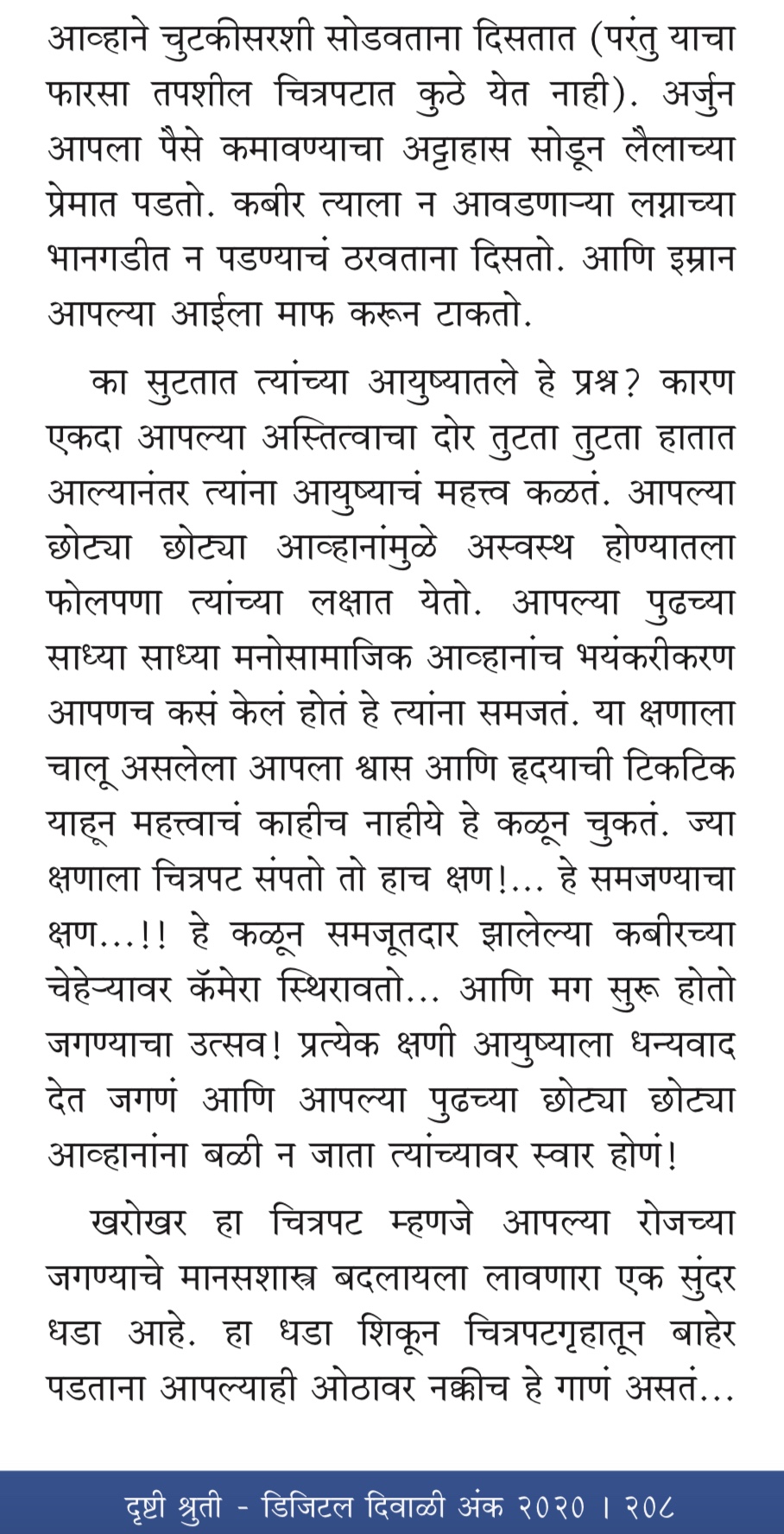 रसिकांनी रसिकांसाठी तयार केलेला हा दिवाळी अंक आहे.. दिसायला साधा तरी देखणा आहे. त्याहून विशेष म्हणजे मराठीमध्ये असा उपक्रम करणाऱ्या या चमूचे अभिनंदन करण्यासाठी आणि त्यांच्या कामावर अभिप्राय देण्यासाठी हा दिवाळी अंक वाचा.