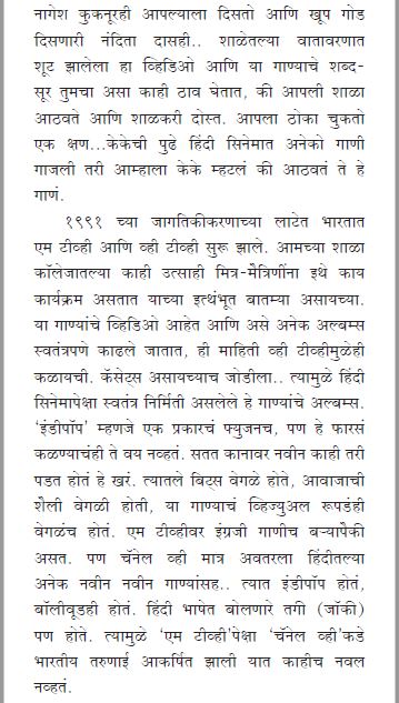 प्रत्येक वाचकाला ९०च्या दशकाचा अनुभव त्याच्या त्याच्या वयाप्रमाणे वेगळा आला असेल. या अंकातले लेख वाचताना आपले ते दिवस, आपल्या गावचे ते दिवस आठवून स्मृती रंजनाचा आनंद घेता येईल. त्यामुळे हा अंक वाचायला छानसा, हलकाफुलका आहे. दिसायला साधा तरी देखणा आहे. त्याहून विशेष म्हणजे मराठीमध्ये असा उपक्रम करणाऱ्या या चमूचे अभिनंदन करण्यासाठी आणि त्यांच्या कामावर अभिप्राय देण्यासाठी हा दिवाळी अंक वाचा.