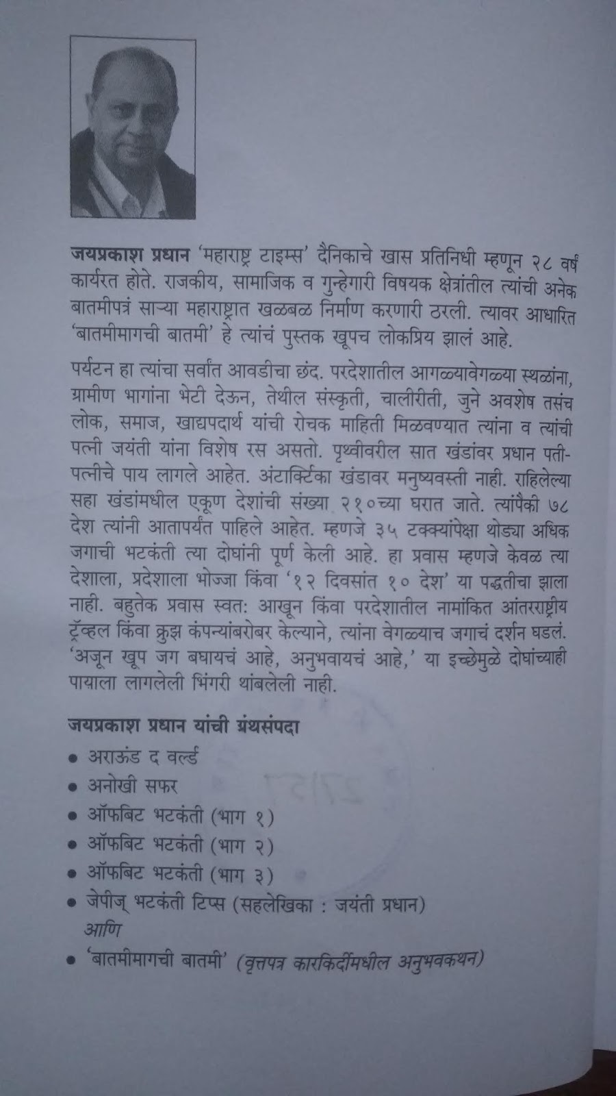 शाळा-कॉलेजमध्ये भूगोलाचा अभ्यास करताना उत्तर ध्रुव, दक्षिण ध्रुव, आर्क्टिक महासागर, अंटार्क्टिका इत्यादींबद्दल आपण वाचलेलं असतं; जुजबी माहिती आपल्याला असते. हे दोन्ही प्रदेश खूपच कमी तापमानाचे बर्फाने वेढलेले आणि जायला खडतर हे आपल्याला माहिती असते. त्यामुळे सहसा मराठी प्रवासवर्णनांमध्ये यांच्याबद्दलची माहिती येत नाही. धाडसी गिर्यारोहकांप्रमाणेच फक्त धाडसी नाविक, संशोधन करणारे शास्त्रज्ञ किंवातिथे ड्युटीवर असलेले सैनिक इत्यादी लोकच तिथे असते जात असतील असं मला वाटत होतं. परंतु जयप्रकाश प्रधान यांच्यासारख्या सैनिक, शास्त्रज्ञ आणि नाविक नसणाऱ्या माणसानेसुद्धा या सफरी केल्या आहेत. आणि तेही आधी सगळे सहा खंड बघून झाल्यावर ! पर्यटनातल्या या अवलियाची पुस्तकातली ओळख वाचा. :