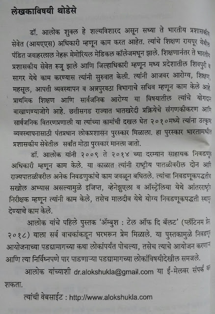 या पुस्तकाचे लेखक माजी आलोक शुक्ल हे सनदी अधिकारी(IAS) असून त्यांनी भारतात आणि भारताबाहेरही निवडणूक प्रक्रियेत काम केले आहे. त्यांची पुस्तकात दिलेली ओळख बघून या विषयावर भाष्य करण्यास ते अगदी योग्य आहेत याची खात्री पटेल.
