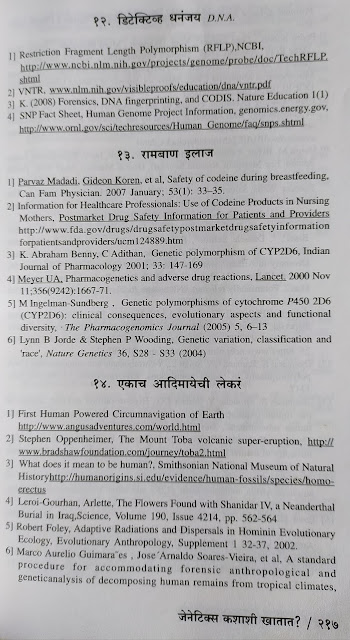 “संदर्भसूची”, “संदर्भग्रंथ” – संदर्भग्रंथ आणी वेबसाईट्सची यादी. मराठी वैचारिक पुस्तकांमध्ये अशी माहिती कमी दिसते. त्याबद्दल लेखिकेचे विशेष आभार.