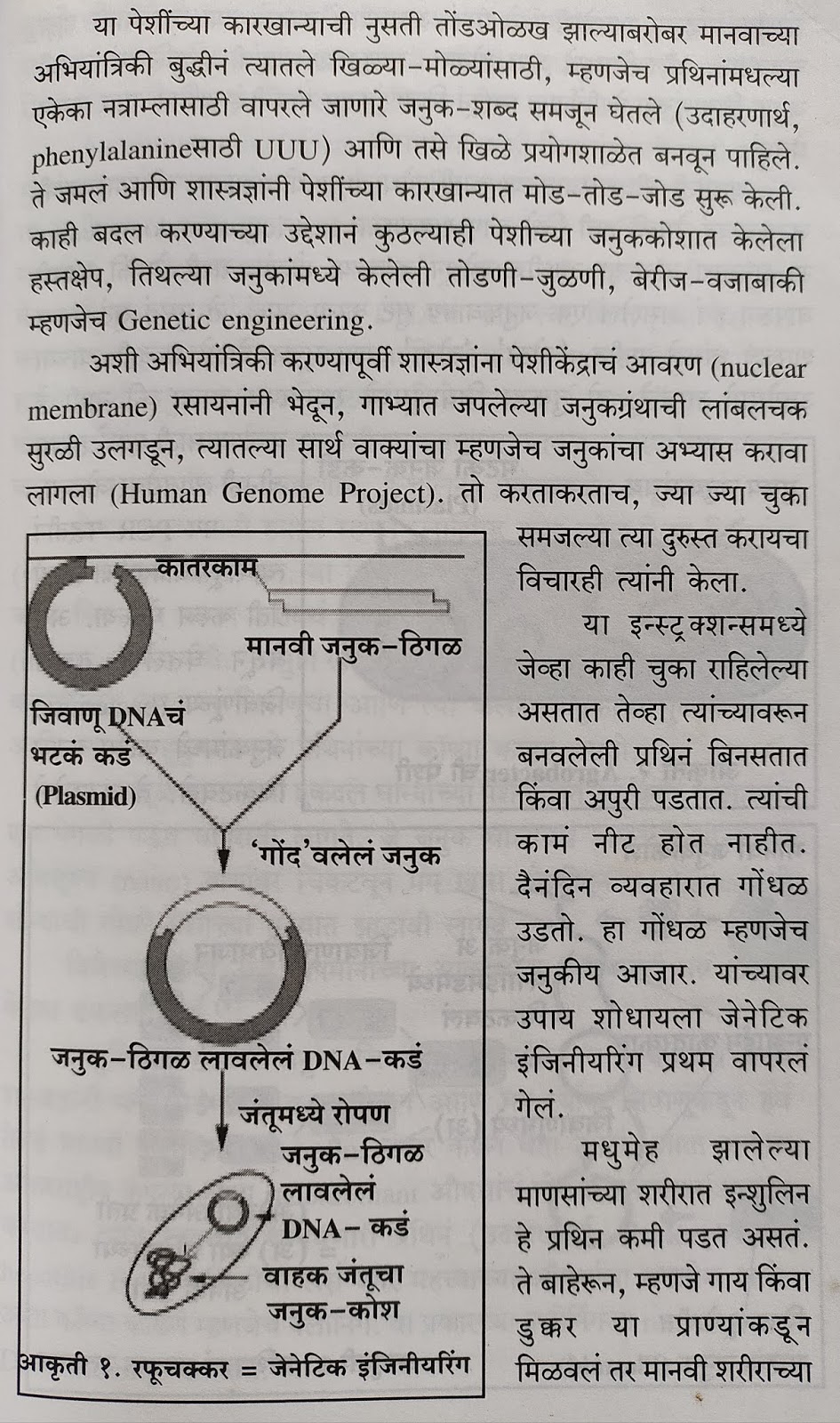 “जीवनाचा धर्मग्रंथ” आणि “मात्रा, वेलांट्या, काने” – डीएनए, आरएनएच्या रचना सविस्तर समजावून दिल्या आहेत.