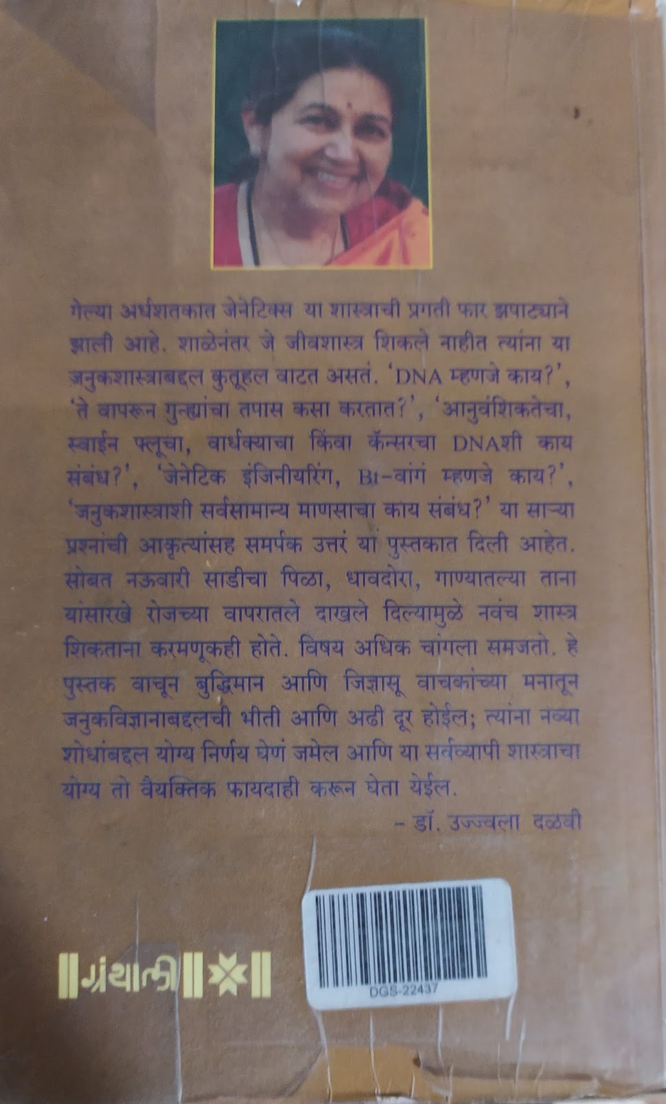 या “तर…” ला उत्तर म्हणजे डॉ. उज्ज्वला दळवी यांचं हे पुस्तक आहे. “जेनेटिक्स कशाशी खातात” हे समजावून देणारं अर्थात या जनुकशास्त्राची तोंडोळख करून देणारं हे पुस्तक आहे. पुस्तक मराठीत आहे हेच त्याचं वैषिष्ट्य नव्हे; तर विषयसुद्धा मराठमोळ्या अगदी घरगुती उदाहरणांतून समजावून सांगितला आहे. त्यातून विषयाची भीती जाते, गोडी लागते, उत्सुकता-जिज्ञासा वाढते.