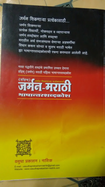 This is a German to Marathi dictionary. This dictionary gives pronunciation of every German word. Also for every noun it gender and plural form is mentioned. This book is quite helpful to any Marathi speaker who is learning German.