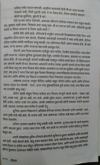 आपल्या मुलाने बाहेर काहितरी भानगड केलीये, ती मुलगी दाराशी आली आहे आणि मुलगा पळून गेला हे समजल्यावर चिडलेले होरी-धनिया आधी त्या मुलीला हाकलवून देण्याची भाषा करतात. पण मग त्यांच्यातला माणूस जागा होतो तो प्रसंग वाचा.