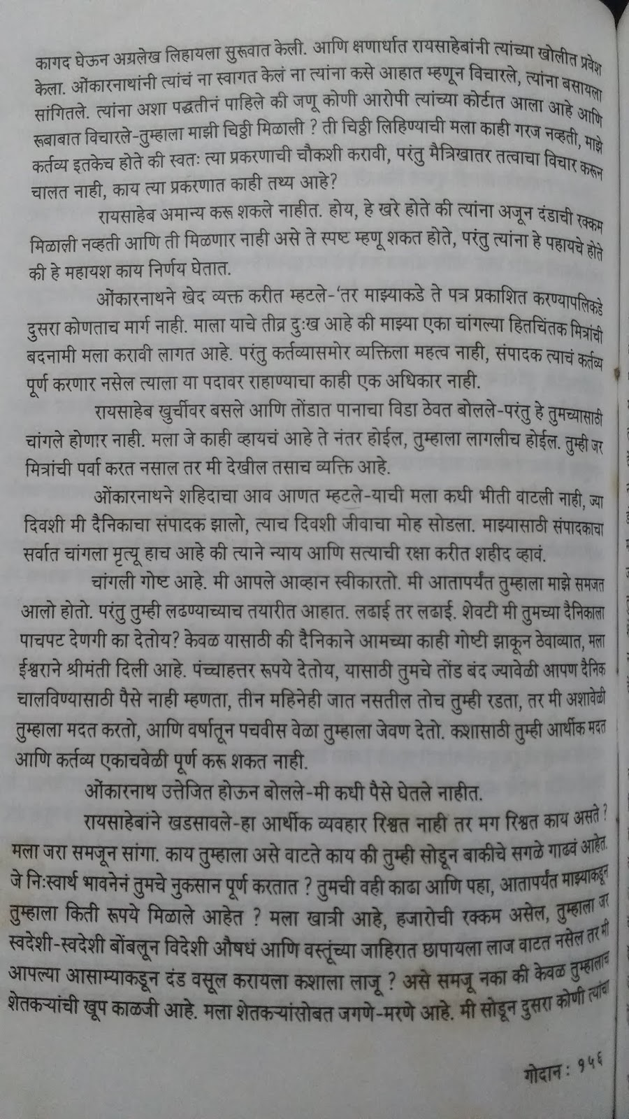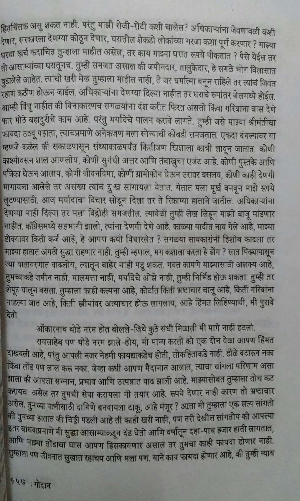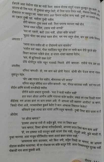 आपल्या मुलाने बाहेर काहितरी भानगड केलीये, ती मुलगी दाराशी आली आहे आणि मुलगा पळून गेला हे समजल्यावर चिडलेले होरी-धनिया आधी त्या मुलीला हाकलवून देण्याची भाषा करतात. पण मग त्यांच्यातला माणूस जागा होतो तो प्रसंग वाचा.
