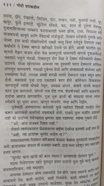 त्यांच्या मोठ्या घराचं वर्णन आहे. लहान मुलांनी चालवलेल्या सार्वजनिक गणपती मधल्या गमती आहेत.