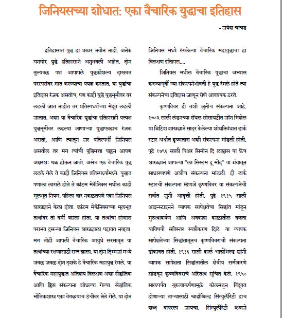 कृष्ण्विवरे, क्वांटम फिजिक्स याबद्दल शास्त्रज्ञांच्या वादप्रतिवादाचा आढावा घेणारा लेख “जिनियसच्या शोधात: एका वैचारिक युद्धाचा इतिहास”