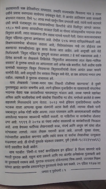 त्यामुळे तुम्ही अशा प्रकारच्या राजकीय-सामाजिक चर्चां बघत-वाचत असाल तर यातले बहुतेक मुद्दे कुठेना कुठे वाचलेले असतील. एखाददोन घटना, आकडेवारी नव्याने कळेल. जर तसं वाचन कमी असेल किंवा तुम्ही अगदीच “पुरोगामीभक्त” असाल तर या पुस्तकातून तुमच्या विचारांना चालना मिळू शकेल. ज्यांना खूपच आदर्श मानत होतो त्यांची उलटतपासणी करणं गरजेचं आहे एवढं तरी पटेल.