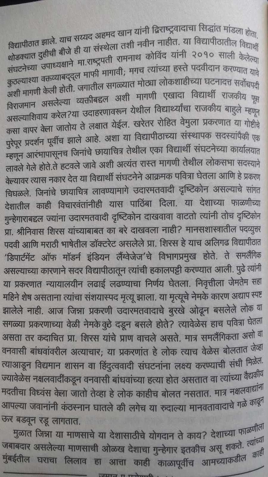 त्यामुळे तुम्ही अशा प्रकारच्या राजकीय-सामाजिक चर्चां बघत-वाचत असाल तर यातले बहुतेक मुद्दे कुठेना कुठे वाचलेले असतील. एखाददोन घटना, आकडेवारी नव्याने कळेल. जर तसं वाचन कमी असेल किंवा तुम्ही अगदीच “पुरोगामीभक्त” असाल तर या पुस्तकातून तुमच्या विचारांना चालना मिळू शकेल. ज्यांना खूपच आदर्श मानत होतो त्यांची उलटतपासणी करणं गरजेचं आहे एवढं तरी पटेल.