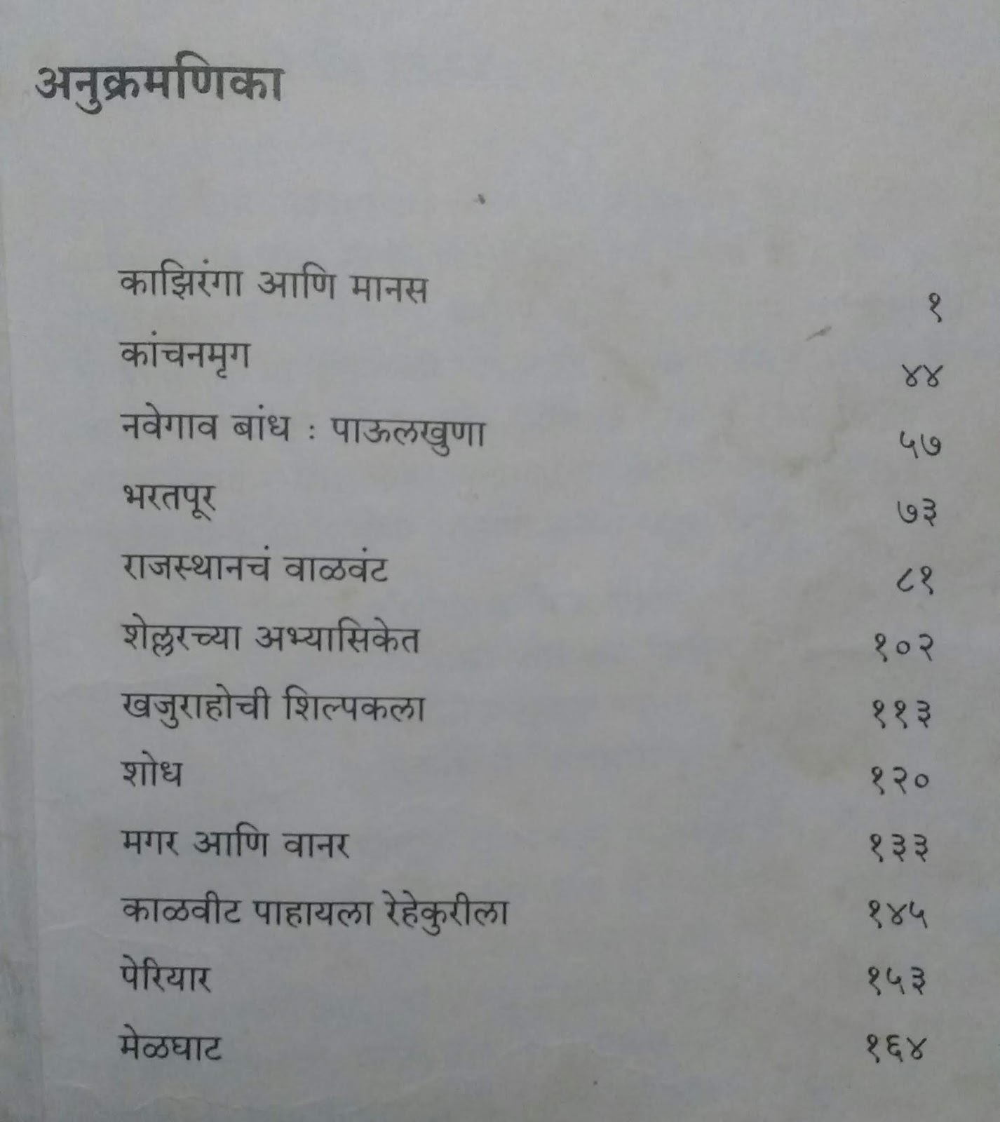 इष्टस्थळी पोचण्याचा प्रवासही कसा मजल दरमजल करत करावा लागायचा हे पण वाचायला मिळतं. तीसचाळीस वर्षांपूर्वी या अभयारण्यांपर्यंत पोचण्यासाठी रेल्वे, बस, रिक्षा आणि पायी प्रवास, तोही बेभरवशाचा करायला लागत होता. अडचणीच्या, घाणेरड्या लॉजमध्ये राहण्याची सोय. सरकारी लालफितीच्या परवानग्या काढून प्रवेश. हे सगळं वाचून आता वनपर्यटनाची स्थिती, प्रवासाच्या आणि राहण्याच्या सोयी खूपच सुधारल्या आहेत हे जाणवल्यावर बरं वाटतं.