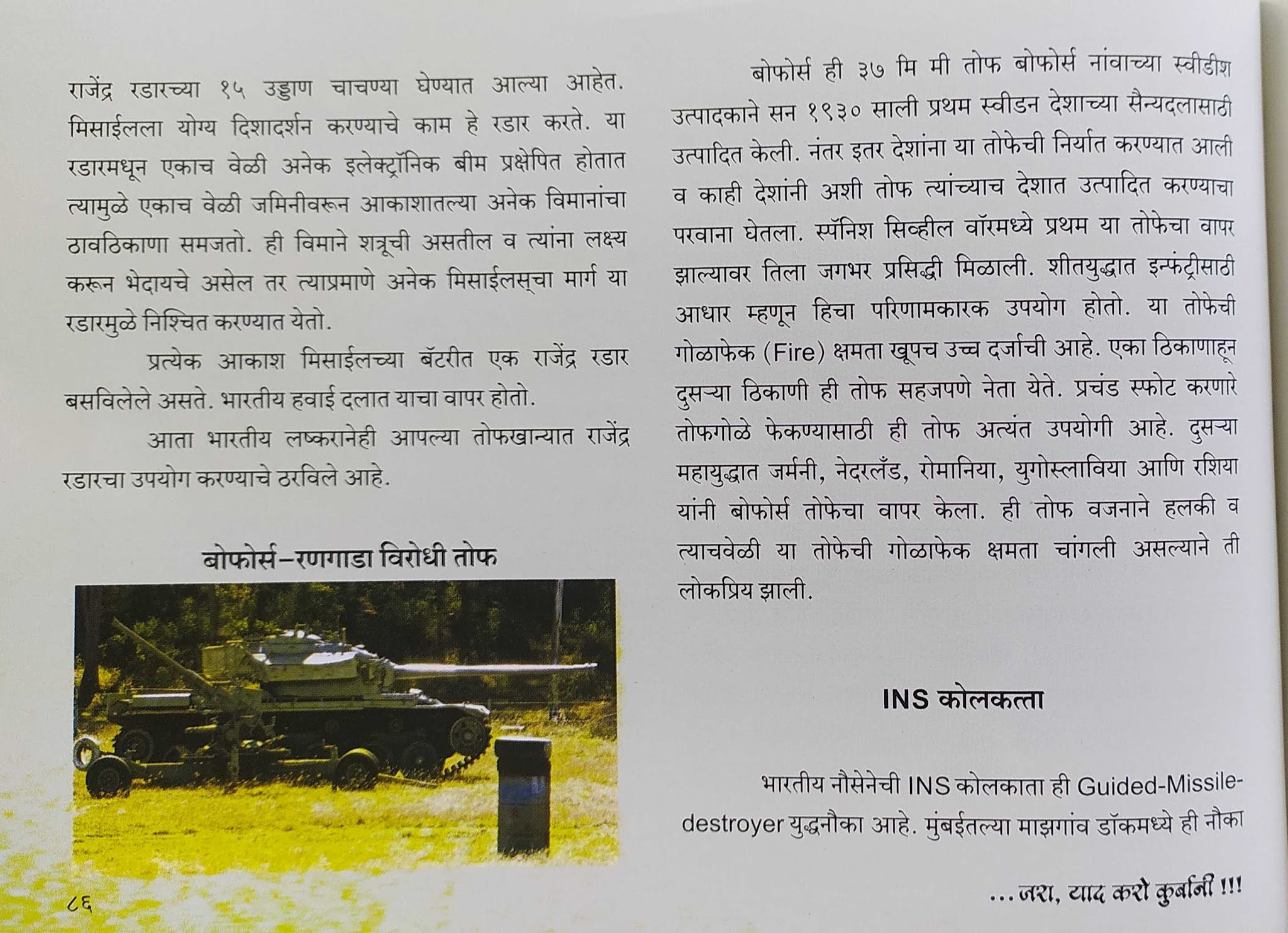 भारतीय सैन्य दलाने मध्ये असलेली काही वैशिष्ट्यपूर्ण विमाने जहाजे आणि श्वान दल यांची थोडक्यात ओळख करून दिली आहे