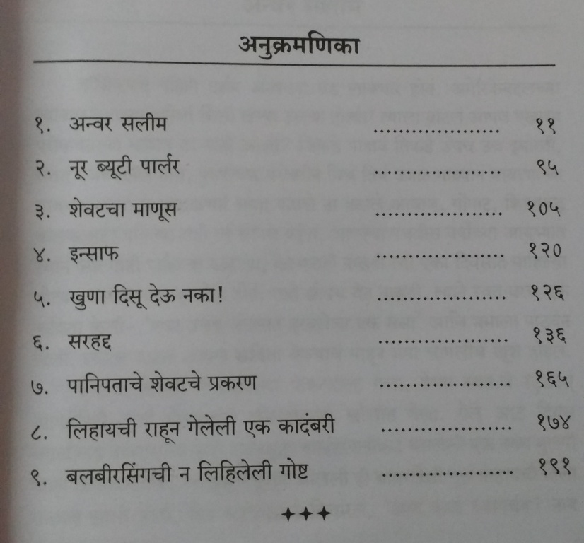 “लिहायची राहून गेलेली एक कादंबरी”, “बलबीरसिंगची न लिहिलेली गोष्ट” हे दोन लेख आहेत.