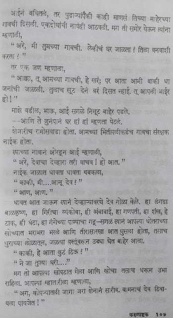 (ज्यांना कोणाला पुस्तकाबद्दल खरं माहिती असेल त्यांनी सांगावं )जर हे खरं असेल तर फारच वाईट आयुष्य लेखकाच्या, कुटुंबाच्या आणि त्यांच्या आईच्या वाट्याला आलं. तरीही ह्या दोन बंधूंनी जे कर्तृत्व दाखवलं त्याचं नवलच वाटेल.पण हे पुस्तक काल्पनिक असेल तर खरंच विषण्ण करणारं पुस्तक आहे. पुस्तक वाचताना कंटाळवाणं होत नाही पण एकसुरी नक्कीच होतं. म्हणजे; सगळ्यांचं सगळं वाईटच होणार आहे हा “अजेंडा” कळाला की असं वाटतं की लेखक असा विचार करत असेल का – “हं आता आता यादीतील पुढचं संकट काय टाकू ? … अरे अजून आत्महत्त्या घेतली नाही. ह्या पात्राला तसं मारतो… ह्या पात्राचं बरं चाललंय असं दाखवलं; ह्याला कर्जबाजारी करतो. … त्याला वेडं करतो …”मला हे वाचताना “पथेर पांचाली” ची आठवण झाली त्याचं परीक्षण लिहिताना सुद्धा मी हेच लिहिलेलं “दुर्दैवाच्या दशावतारांची जंत्री असं कादंबरीचे स्वरूप वाटतं”. जी.एंच्या काजळमाया पुस्तकाबद्दल सुद्धा असंच वाटलेलं.