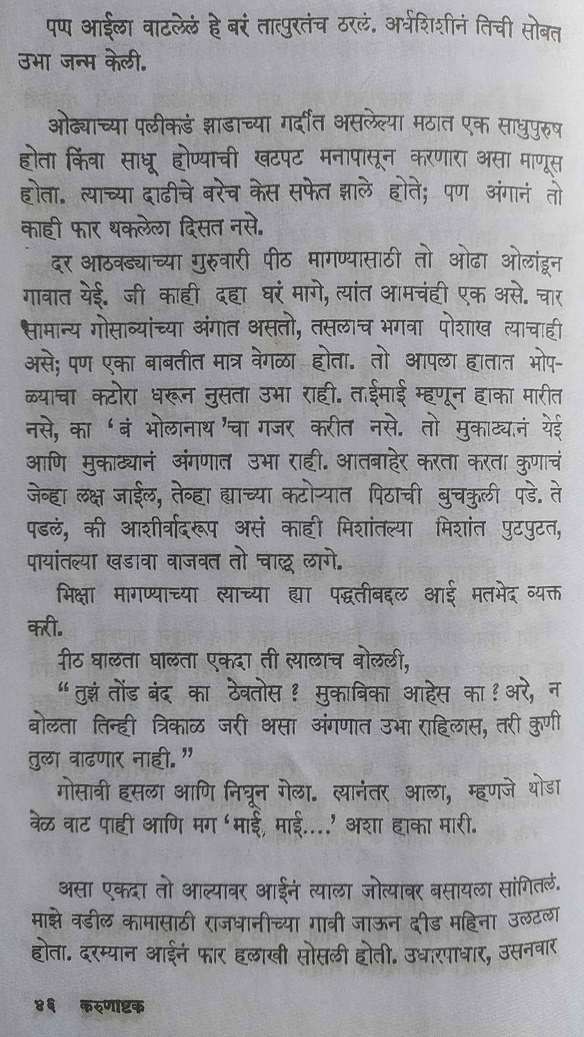 कादंबरीतला एकमेव बरा प्रसंग. नोकरीचा भाग म्हणून संस्थानच्या देवस्थानच्या खजिन्याची जबाबदारी मिळते तेव्हा काही चांगले दिवस येतात. मग पुन्हा बदली आणि ये रे माझ्या मागल्या !