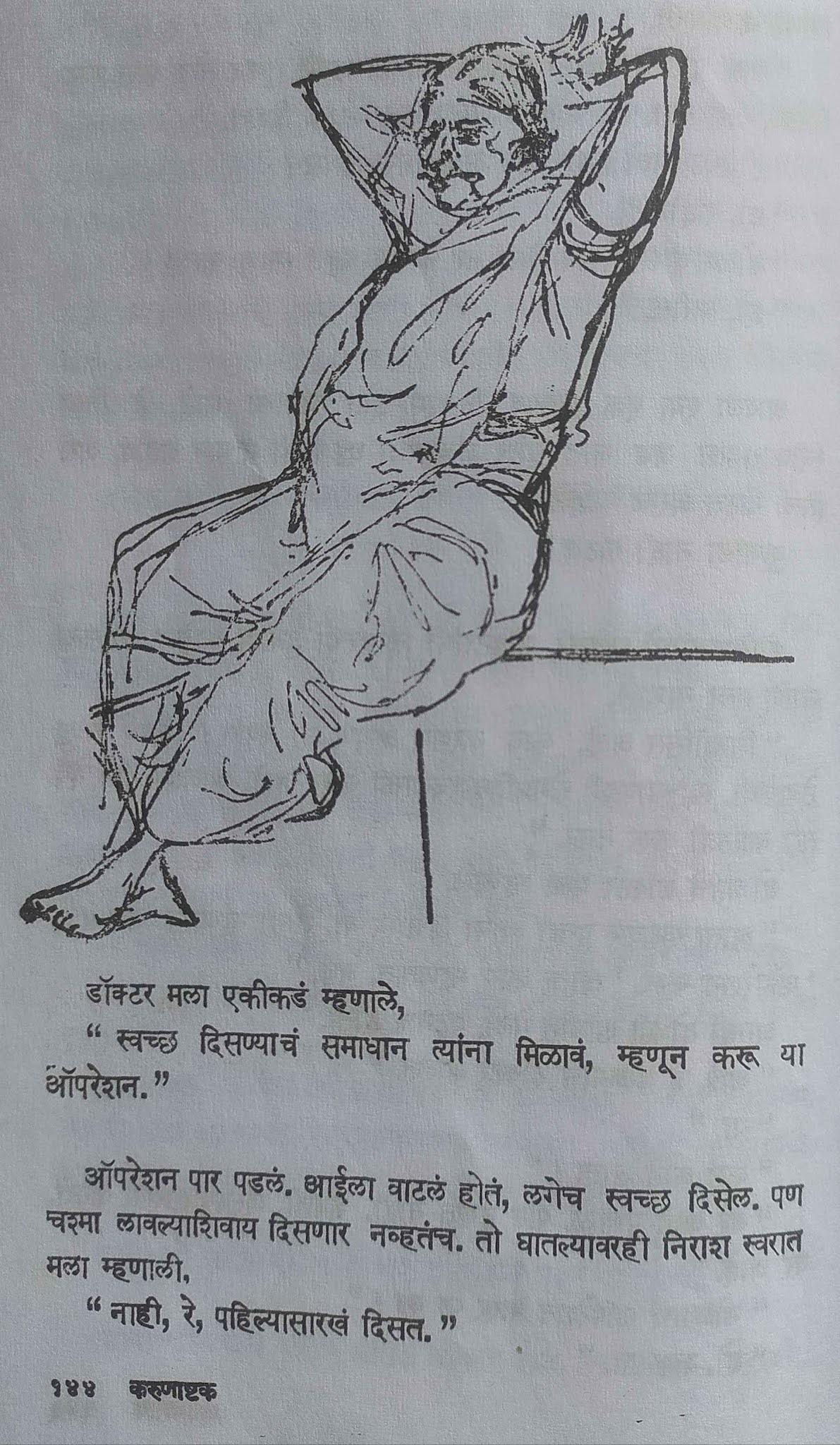 पुस्तकात लेखकाने काढलेली पात्रांची रेखाचित्र आहेत. वृद्ध आईचं हे चित्र