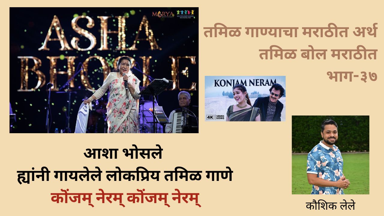 काल १२ एप्रिल २०२६ ला, सूरसम्राज्ञी आशा भोसले ह्यांचे निधन झाले. त्यांनी मराठी आणि हिंदी सह अनेक भारतीय भाषांमध्येसुद्धा गाणी गायली होती. माझ्या “तमिळ गाणी मराठीत” ह्या उपक्रमात आज त्यांनी गायलेल्या एका लोकप्रिय तमिळ गाण्याची ओळख करून देतो. आणि आशाताईंना मनःपूर्वक श्रद्धांजली अर्पण करतो. त्यांची गाणी त्यांचा सूर सदैव आपल्या कानात गुणगुणत राहील. ओम शांति: