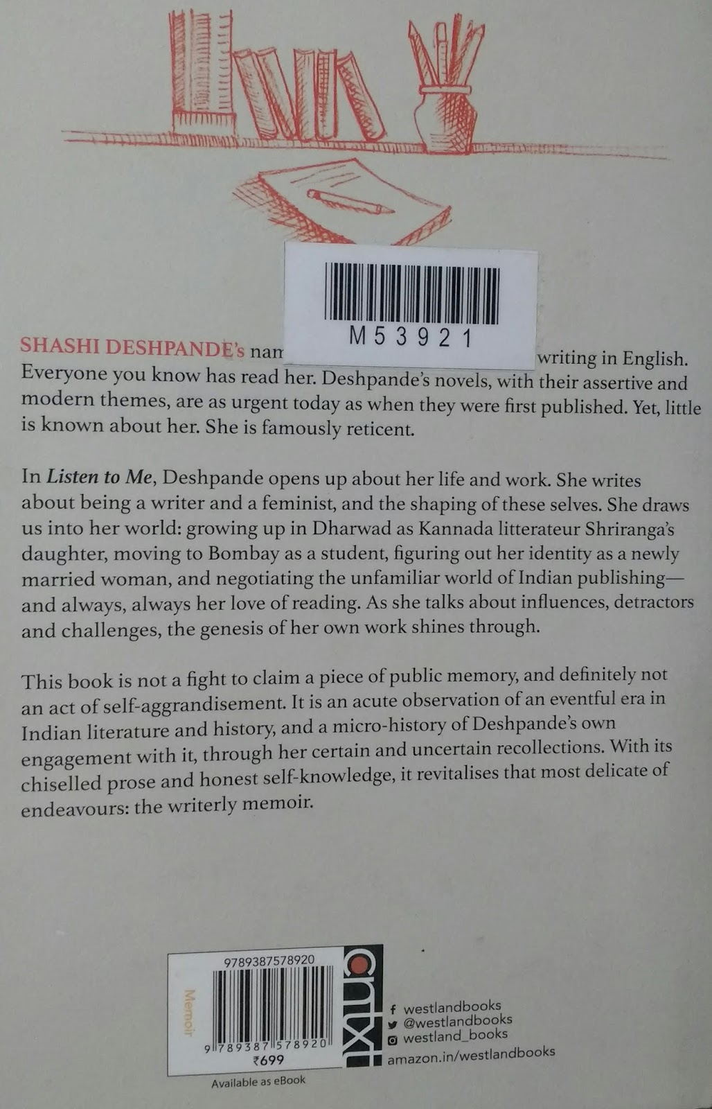 त्यामुळे तुम्ही शशी देशपांडे यांचे निस्सीम चाहते असाल, किंवा अशा प्रसिद्ध व्यक्तींच्या साध्या साध्या गोष्टी/घटनांतही तुम्हाला कुतूहल वाटत असेल तरच वाचा.