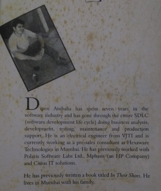 हे पुस्तक वाचतनाच फेसबुकवर लेखक दिपेनशी फेसबुकवर संपर्क केला होता. मग फोनवर थेट बोलणंही झालं. त्यामुळे मी परीक्षण लिहिलेलं हे लागोपाठ दुसरं पुस्तक आहे जे माझ्याच वयाच्या, आयटीतल्याच तरूण लेखकांनी लिहिलं आहे आणि पुस्तकाच्या निमित्ताने त्यांच्याशी थेट बोलणं ही झालं.