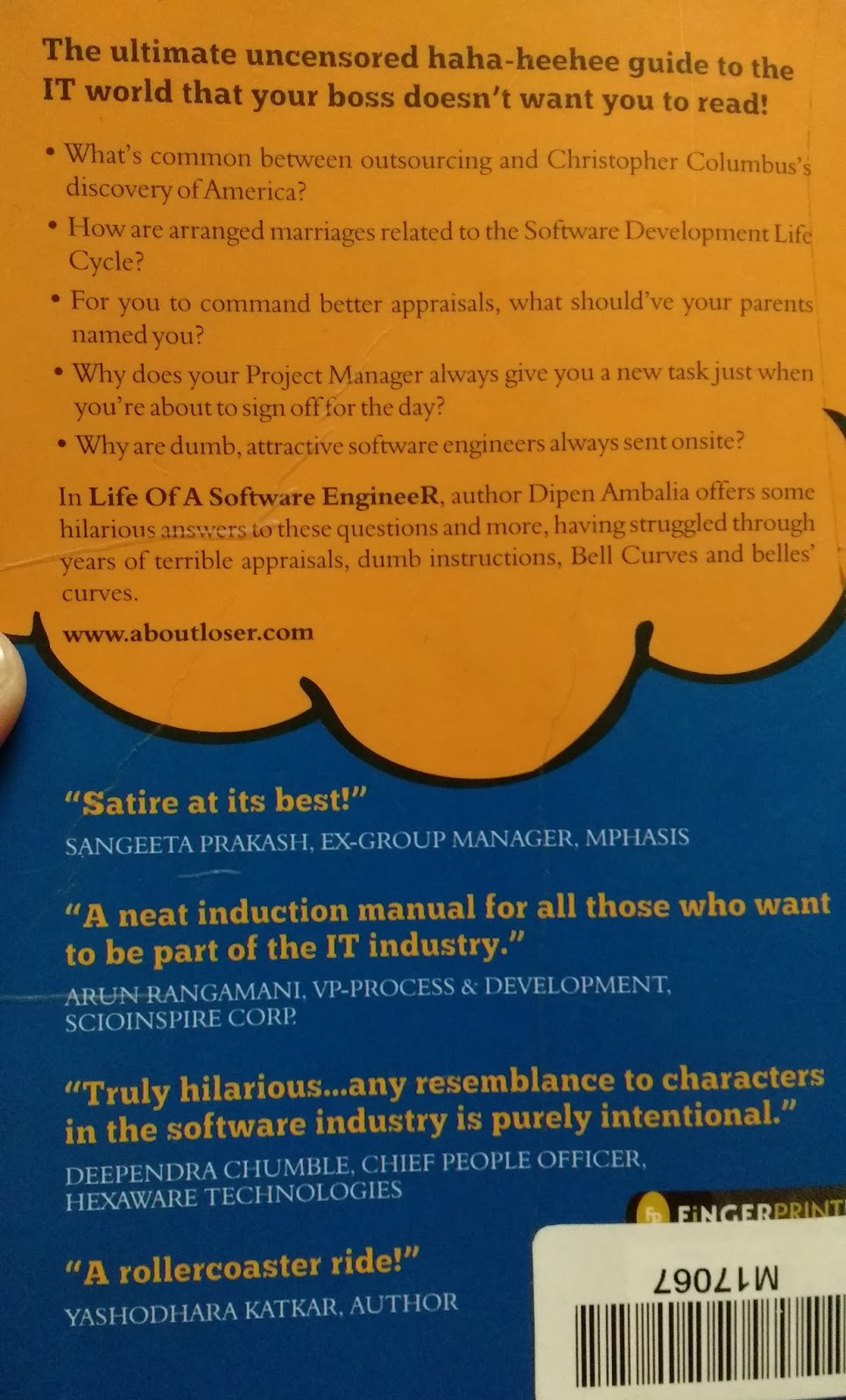 माहिती तंत्रज्ञान अर्थात “आयटी” क्षेत्र भारतातलं रोजगाराचं महत्त्वपूर्ण क्षेत्र आहे. आयटी म्हटलं की – चांगला पगार मिळतो, परदेशवारीची संधी मिळते; परदेशी कायमस्वरूपी स्थायिक होण्याचा अलभ्यलाभ मिळतो, आरामदायी एसीत बसून काम करायचं असतं अशी वेगवेगळी वैशिष्ट्य आपल्याला कुणीही सांगेल. त्यात काही चुकीचंही नाही. पण समर्थांनी म्हटलंच आहे “जगी सर्व सुखी असा कोण आहे?”. एखाद्या आयटीवाल्याशी तुम्ही बोललात तर तो तुम्हाला त्याच्या समस्यांचा पाढा वाचून दाखवेल. आत्महत्याग्रस्त शेतकरी, शोषित कामगार किंवा वंचित आदिवासी यांच्या समस्यांइतक्या या समस्या तीव्र, जीवघेण्या नक्कीच नाहीत. पण तरीही त्याला काहितरी सलतंय खरं; हे तुम्हाला समजेल ! तो आयटिवाला जर “दिपेन अंबालिया” असेल तर तो नुसतं तुमच्याशी बोलणार नाही थेट पुस्तकंच लिहील “लूजर – लाईफ ऑफ सॉफ्टवेअर इंजिनियर” नावाचं. आणि त्याच्या समस्या ऐकताना तुमच्या डोळ्यातून खरंच पाणी येईल… हसून हसून.