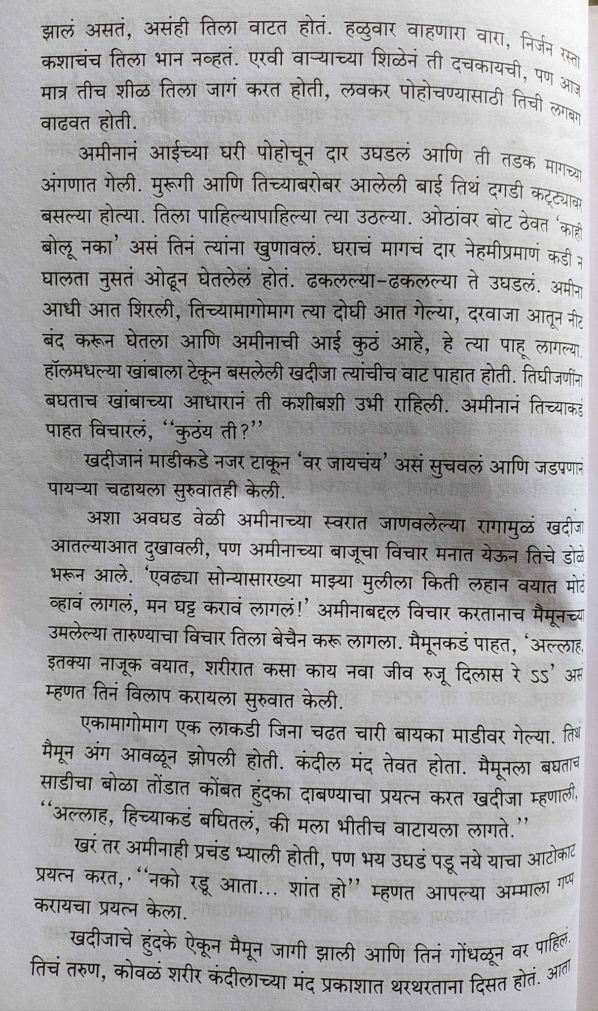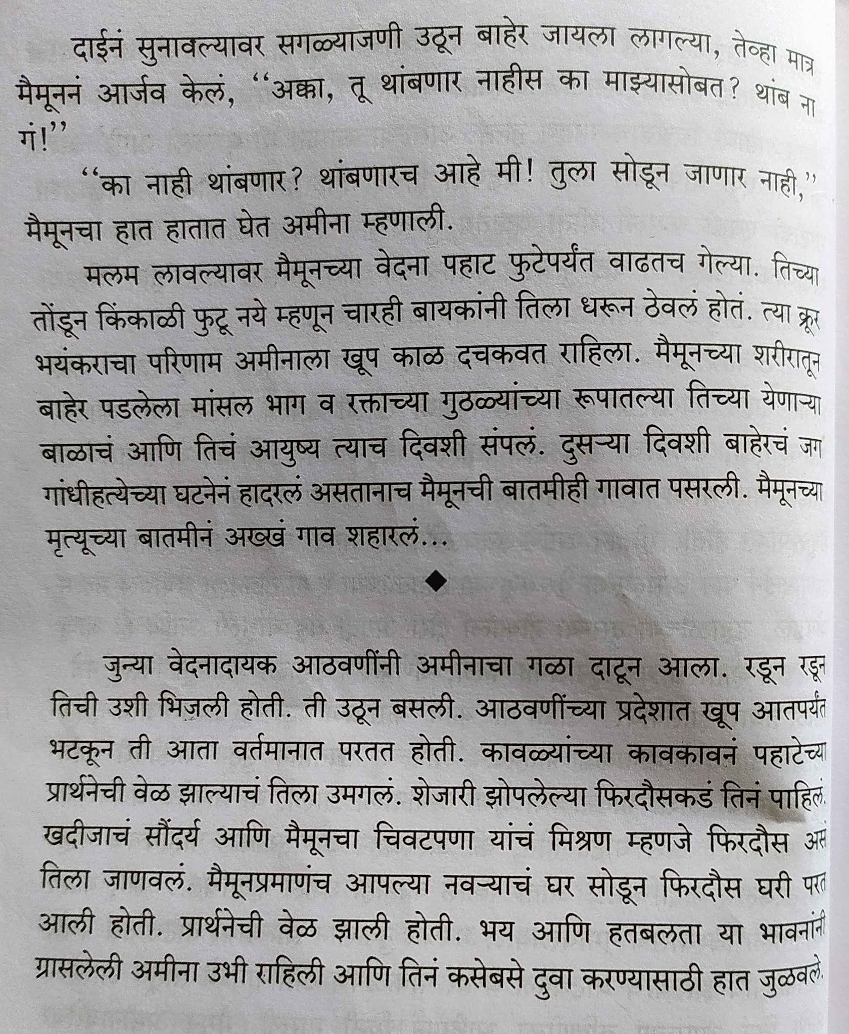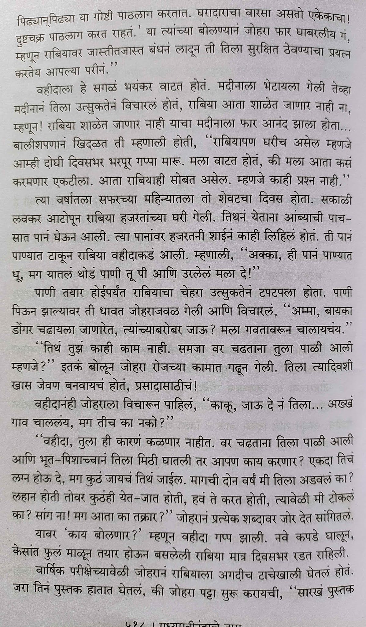 मुलगी वयात आली की तिने घराबाहेर पाऊल ठेवायला बंदी. सगळ्या वस्त्रांमध्ये लपेटून घरच्या लोकांबरोबरच अगदी जवळपासच्या घरी किंवा नातेवाईकांकडे फक्त येणंजाणं. लग्न सुद्धा नात्यागोत्यातच. साटंलोटं. चुलत भावाशी, मावस भावाशी लग्न. मुलीच्या जन्मापासूनच किंवा मुलगी लहान असतानाच मोठ्या माणसांनी ठरवायचं की माझी मुलगी माझ्या बहिणीच्या मुलाला किंवा माझ्या भावाच्या मुलाला देणार. पुढे ती मुलगी किंवा तो मुलगा कसे निघतात; त्यांची एकमेकांची आवड निवड ह्याचा काही संबंध नाही. कारण लग्न आवडी-निवडी साठी नाही तर पुरुषाच्या सुखासाठी आणि मुलं पैदा करण्यासाठी आहे एवढंच ! लग्न आपल्या आपल्यातच झालं तर संपत्ती, पैसा त्याची फाटाफूट होणार नाही. ताटातलं वाटीत, वाटीतलं ताटात असंच होत राहील.