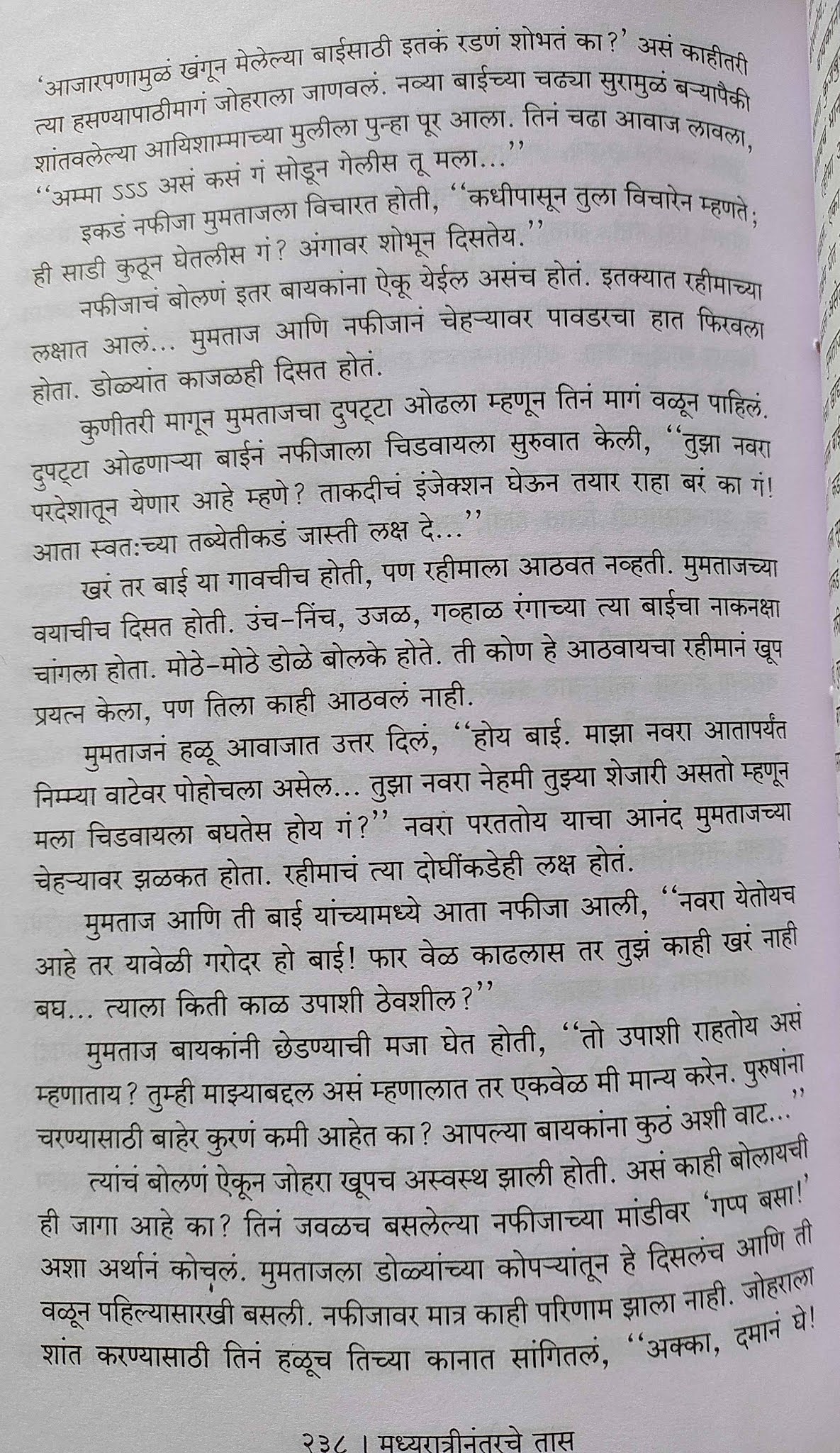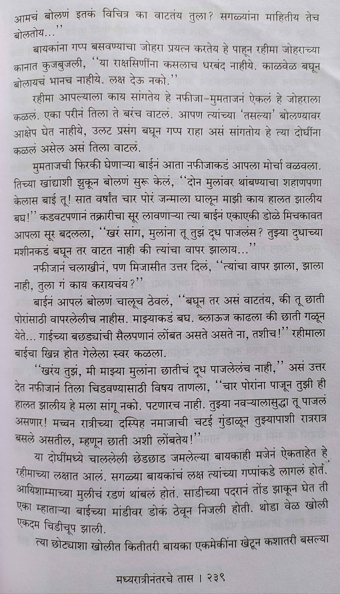 स्त्रीचं समाजातलं कार्यक्षेत्र म्हणजे, “फक्त चूल आणि मूल”; हा एकूणच जागतिक समज. प्रबोधनाच्या, समाजसुधारणेच्या ज्या टप्प्यावर एखादा देश, एखादा धार्मिक समाज असेल त्या टप्प्यानुसार या धारणेत कमी-अधिक शिथीलता येते. त्यानुसार मुलींना शिक्षणाचं, व्यवसायाचं, जोडीदार निवडण्याचं, कुठले कपडे घालायचे याचं, काय भाषा बोलायची, कोणाशी भेटायचं याचं स्वातंत्र्य मिळतं किंवा त्यावर नियंत्रण घातलं जातं. मुस्लिम समाज या बाबतीत अजूनही बराच मागासलेला आणि बंदिस्त आहे. या बंदीस्ततेमुळे मुसलमान स्त्रियांची जी कुचंबणा होते आणि त्यातून शारीरिक, मानसिक व लैंगिक भावनांचा जो विस्फोट होतो त्याचं समाजचित्र एक मुस्लीम महिलाच आपल्या समोर उभं करत आहे.