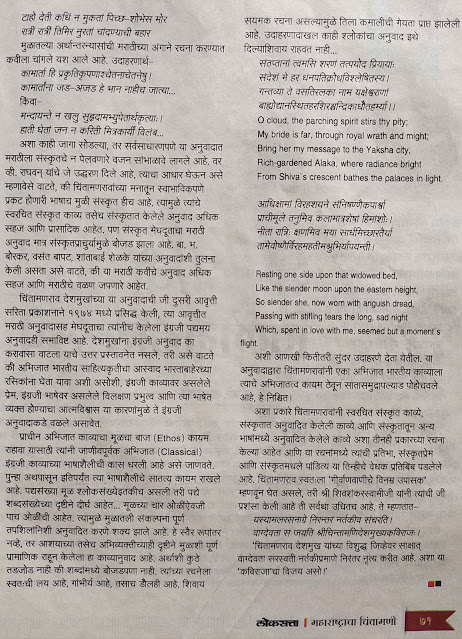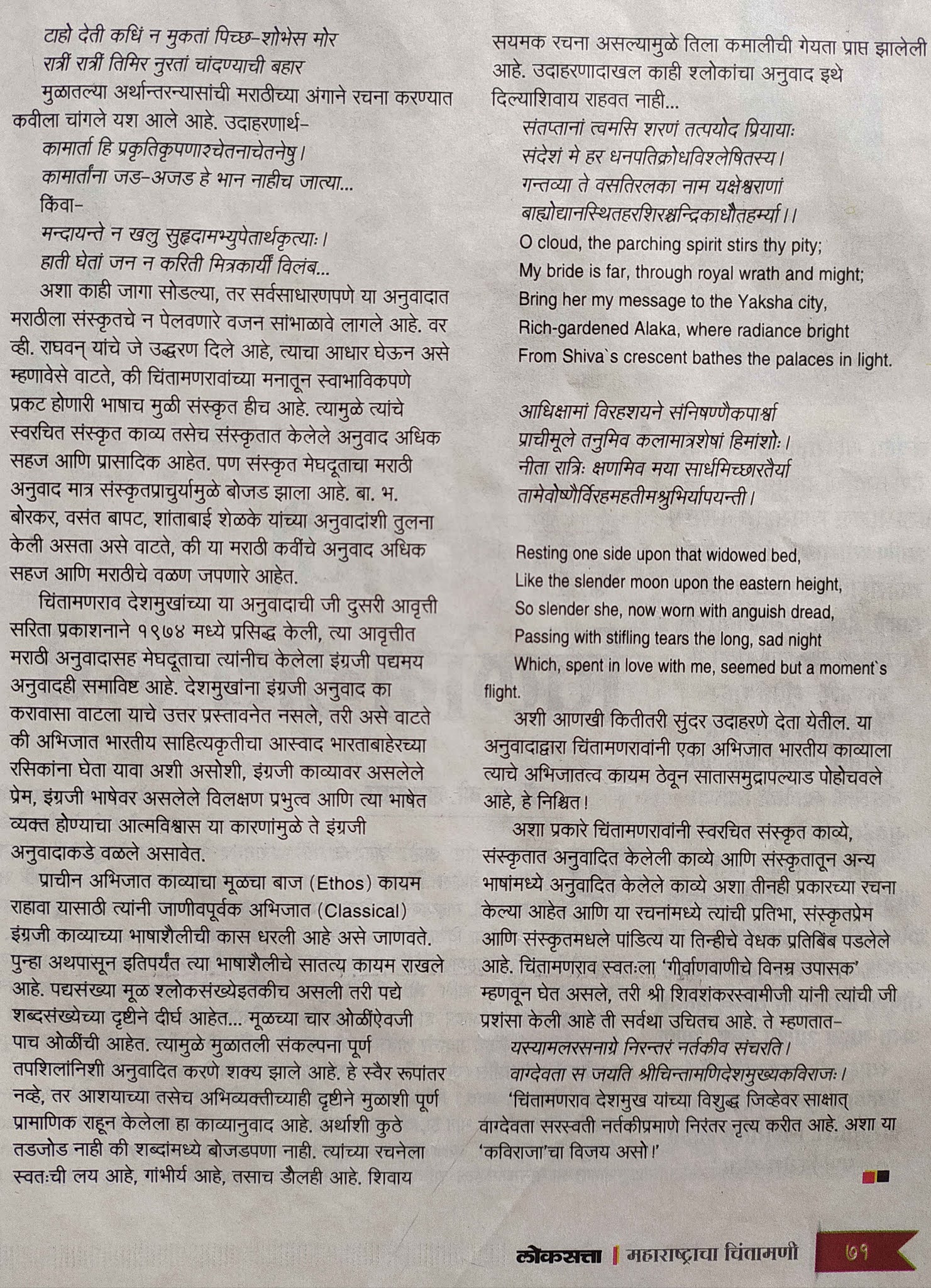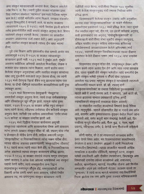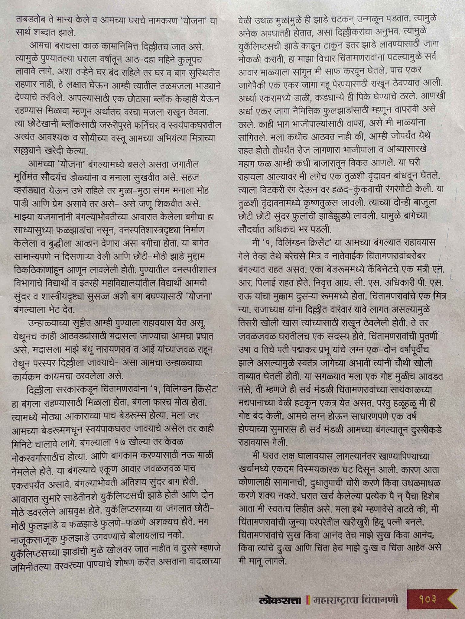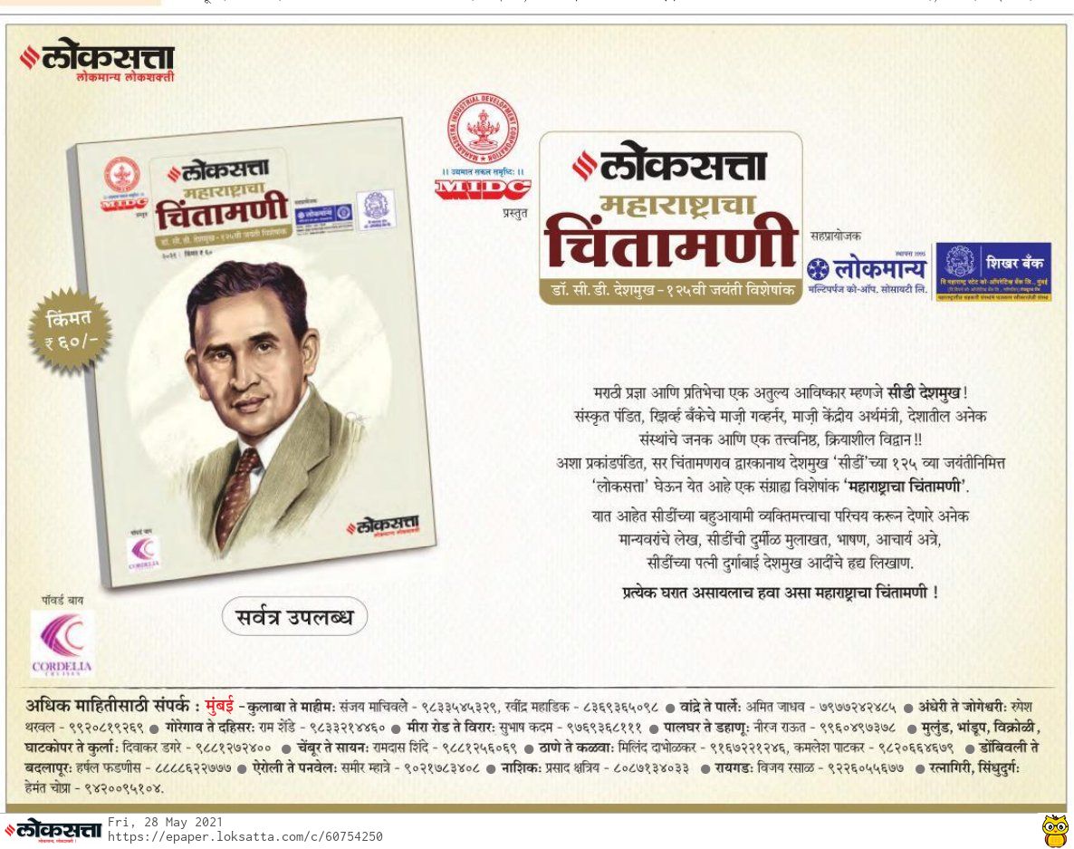 या विशेष अंकाची कल्पना आपल्याला आली असेलच. अतिशय वाचनीय आणि संग्राह्य असा हा विशेषांक आहे. लोकसत्ता परिवाराने हा आगळावेगळा उपक्रम राबवून वाचकांना मोठी भेट दिली आहे. अनेक वाचक हा विशेषांक वाचून चिंतामणरावाबद्दल अजून वाचायला उद्युक्त होतील आणि प्रेरणा घेतील हीच सदिच्छा.