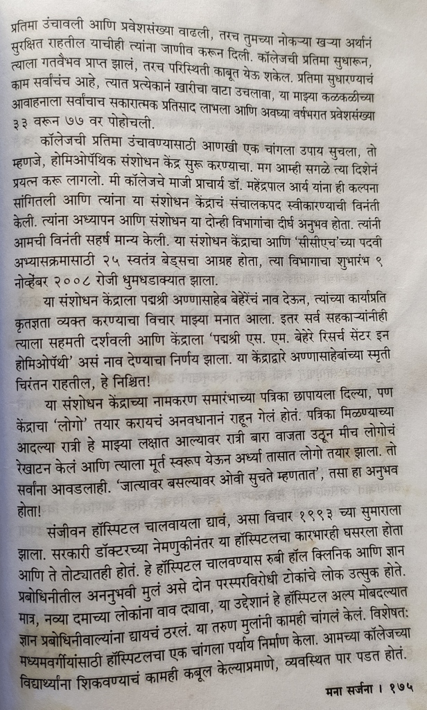 पुण्यात धोंडूमामा साठे होमीओपाथी कॉलेज आहे. त्या कॉलेजशी आणि ती चालवणाऱ्या संस्थेत त्यांनी काम केलं. त्याचे कडू-गोड अनुभव पुस्तकात आहेत.