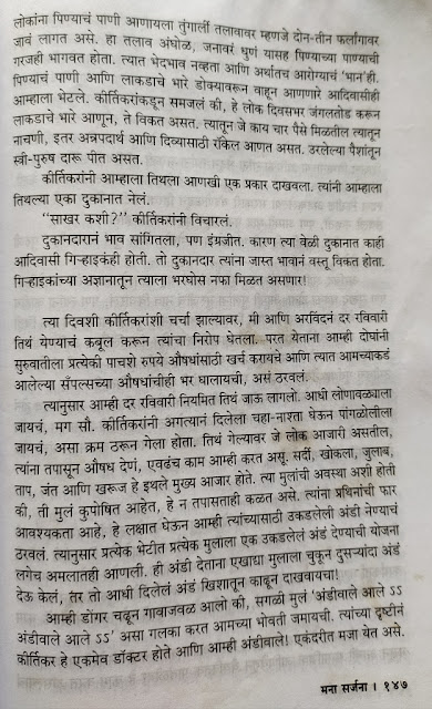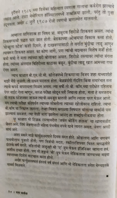 वैयक्तिक घटनांचा तपशीलही खूप येतो. एखाद्याचा घरगुती अल्बम बघितल्यासारखं वाटतं. सर्वांच्या कृतज्ञतेपोटी त्यांनी हे लिहिलं असेल हे मान्य, पण त्रयस्थ वाचक त्याच्याशी समरस होऊ शकत नाही.