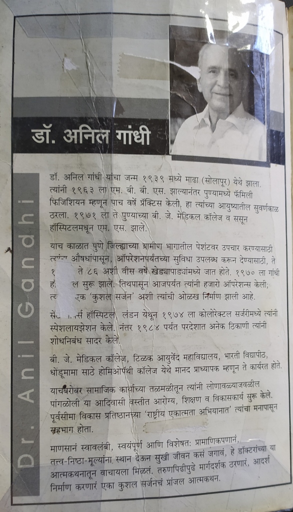 ज्येष्ठ वैद्यकीय व्यावसायिक डॉ. अनिल गांधी यांचं हे आत्मचरित्र आहे. त्यांच्याबद्दल पुस्तकात दिलेली माहिती