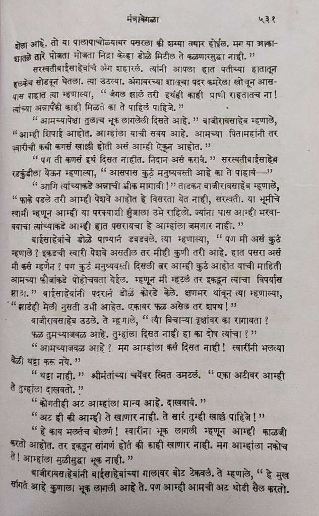 या सगळ्या परिस्थितून जाताना पेशव्यांच्या मनाची काय घालमेल झाली असेल! किती ताण-तणाव आले असतील ! आशा-निराशेच्या या खेळात आपल्या जवळच्या व्यक्तींबरोबर पेशवे मन मोकळं करताना काय सांगत असतील? त्यांच्या लहानपणी घडलेले कटू प्रसंग, नाना फडणविसांबरोबर झालेला संघर्ष, त्यातून त्यांच्या आयुष्याला आकार याची थोडीशी झलक आपल्याला दिसते.