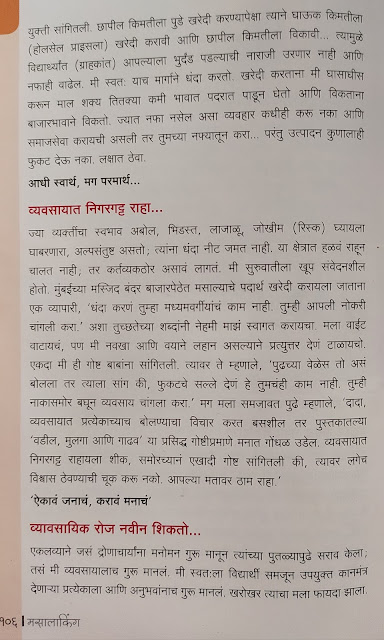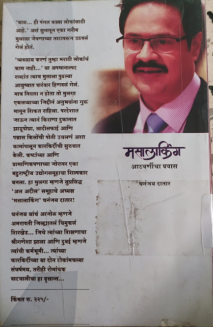 मराठी माणूस सहसास धंद्यात पडत(!) नाही. पण पडलाच तर निग्रहाने पडतो. सर्वोत्तम व्यवसाय करण्याची त्याची इच्छा असते. त्यासाठी मेहनत घ्यायची इतकी तयारी असते की पुढे त्याचे यश सर्वांना अचंबित करते. अशा यशस्वी उद्योगपती पैकी धनंजय दातार आहेत. दुबई आणि आखाती देशांमध्ये त्यांचा मसाल्याचा व्यापार व्यापार आहे. या व्यापाराचा दबदबा इतका आहे की प्रत्यक्ष दुबईच्या राजघराण्यातल्या व्यक्तीने त्यांना “मसालाकिंग” म्हणत गौरवले होते. त्यांच्याबद्दल पुस्तकात दिलेली थोडी माहिती.