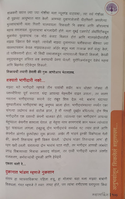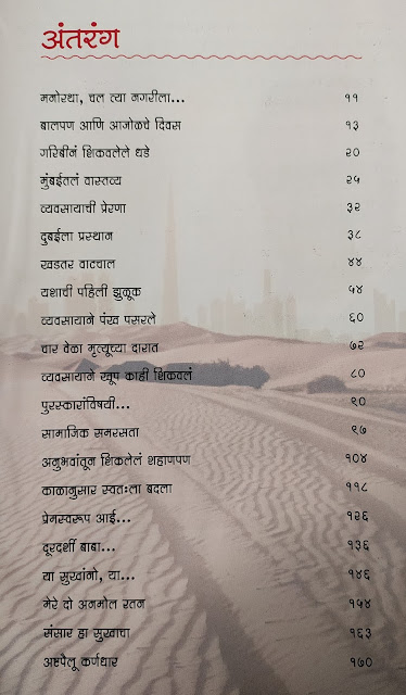 ह्या सुरुवातीपासून त्यांचा आजपर्यंतचा खडतर प्रवास, आलेल्या अडचणी, काढलेले मार्ग, शिकलेले धडे, अपघात आणि शारीरिक व्याधींशी संघर्ष इत्यादी त्यांनी पुढे पुस्तकात मांडले आहे. या सगळ्याचा उद्देश उद्देश स्वतःची शेखी मिरवणे नसून हे एक प्रांजळ आत्मकथन आहे. त्यांच्याप्रमाणे ज्यांना व्यवसाय करायचा असेल त्यांना हे अनुभव मार्गदर्शक ठरावेत ही प्रामाणिक इच्छा आहे. म्हणून स्वतःच्या अनुभवावर आधारित निष्कर्ष सुद्धा त्यांनी होतकरू व्यावसायिकांसाठी सांगितले आहेत हे काही सल्ले वाचा