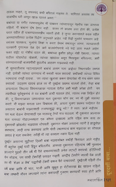 पुस्तकात त्यांनी त्यांच्या आई-वडील, पत्नी आणि मुलांबद्दल एक एक लेख लिहिला आहे. त्यांच्या यशात या प्रत्येकाचा वाटा आहे. आई-वडिलांच्या संस्काराचा, पत्नीने दिलेल्या साथीचा, मुलांनी वडिलांना आपल्याला जास्त वेळ देता येत नाहीये हे समजून घेतल्याचा… दातारांबद्दल त्यांच्या पत्नीने आणि मुलांनी लिहिलेले छोटे लेख पुस्तकात आहेत. धनंजयरावांची कुटुंबवत्सलता आणि यशस्वी होण्यासाठी आवश्यक असलेले कुटुंबाचे पाठबळ/सपोर्ट सिस्टीम अधोरेखित होते.