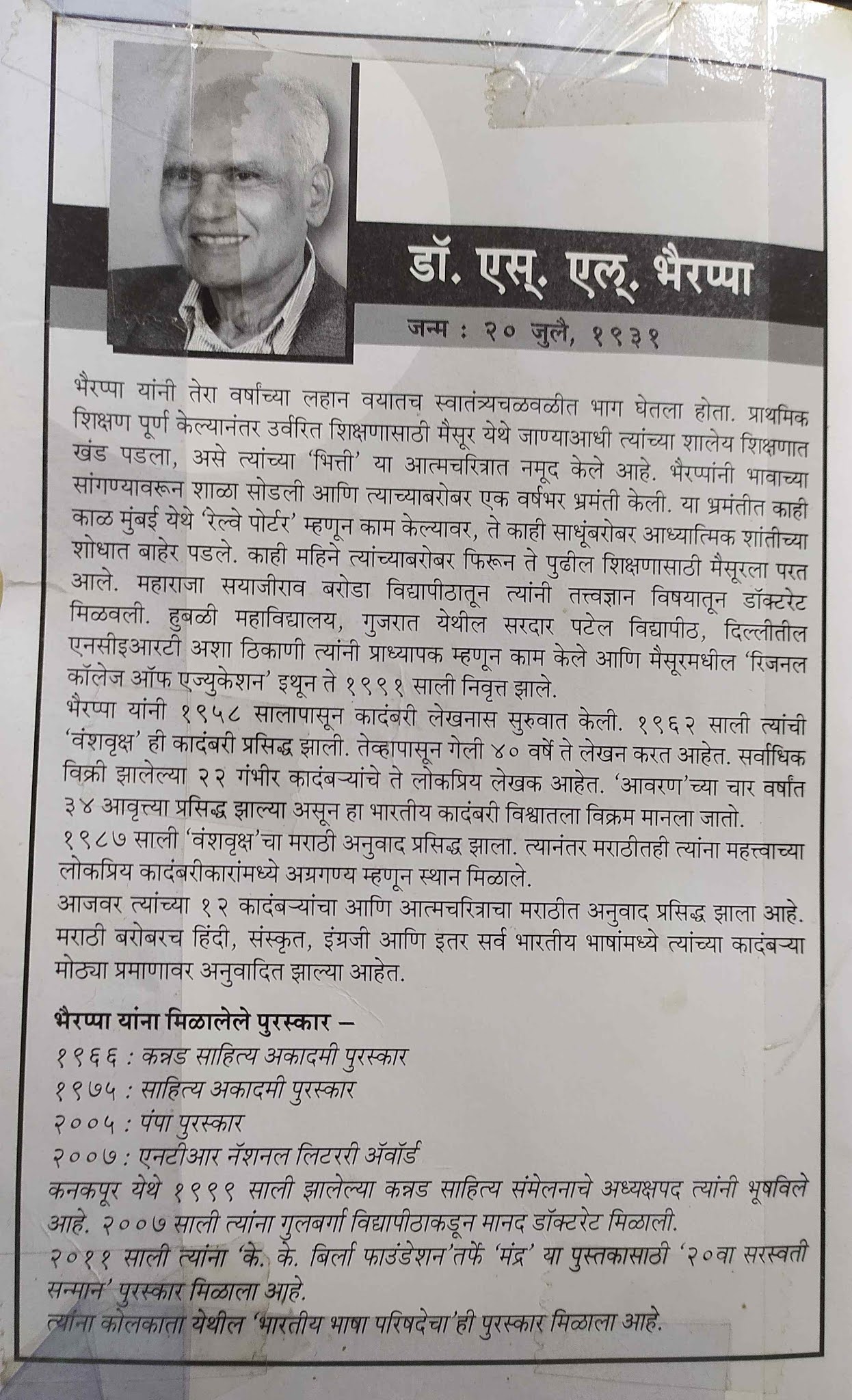 लेखक : डॉ. एस.एल. भैरप्पा (Dr. S. L. Bhairappa)