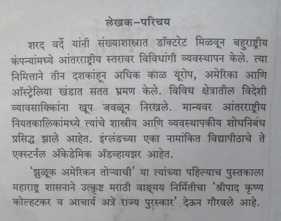 लेखकाला या व्यक्ती व्यवसाया निमित्त भेटल्या. त्यातले काही त्याचे ग्राहक आहेत, काही पार्टनर, काही वरिष्ठ. त्यांची कंपनी चालवायची पद्धत, व्यावसायिक यशाची सूत्र, मॅनेजमेंटच्या पद्धती लेखकाला कशी उमगली; त्यांच्याशी धंदा करताना कडुगोड प्रसंग आले हे सगळं उद्बोधक आहे. आपल्यालाही हसतखेळत व्यवस्थापनाचे धडे देणारं आहे.