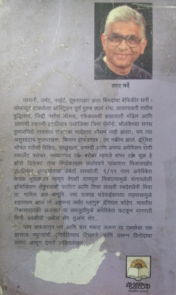 लेखकाला त्याच्या व्यवसायानिमित्त भेटलेल्या आणि खास लक्षात राहिलेल्या व्यक्तींची व्यक्तिचित्रणे या पुस्तकात आहेत. थोडक्यात हे पुस्तक म्हणजे परदेशी व्यक्ती-आणि-वल्ली आहे अशी एका वाक्यात या पुस्तकाची ओळख करून दिली तरी पुरेशी आहे. त्यांचा वल्लीपण काय आहे हे इथे सांगून उपयोग नाही, ती मजा वाचण्यात आहे. पण पुस्तकाच्या वेगळेपणाबद्दल जरा अजून सांगतो. पुस्तकातल्या व्यक्ती या वल्ली आहेतच पण त्यांच्या वल्लीपणामागे त्यांच्या देशातल्या संस्कृतीचाही वाटा आहे. तो आपल्याला बघायला मिळतो हे त्या पुस्तकाचं वैशिष्ट्य.