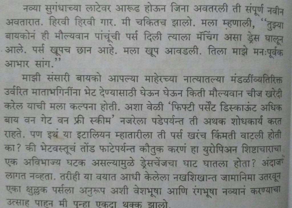 लेखकाची शैली मिश्किल, खुसखुशीत आहे. गप्पांची मैफल रंगवाणारा एखादा मित्र आपल्याशी गप्पा मारतो आहे असंच वाटतं. काही उदाहरणं.