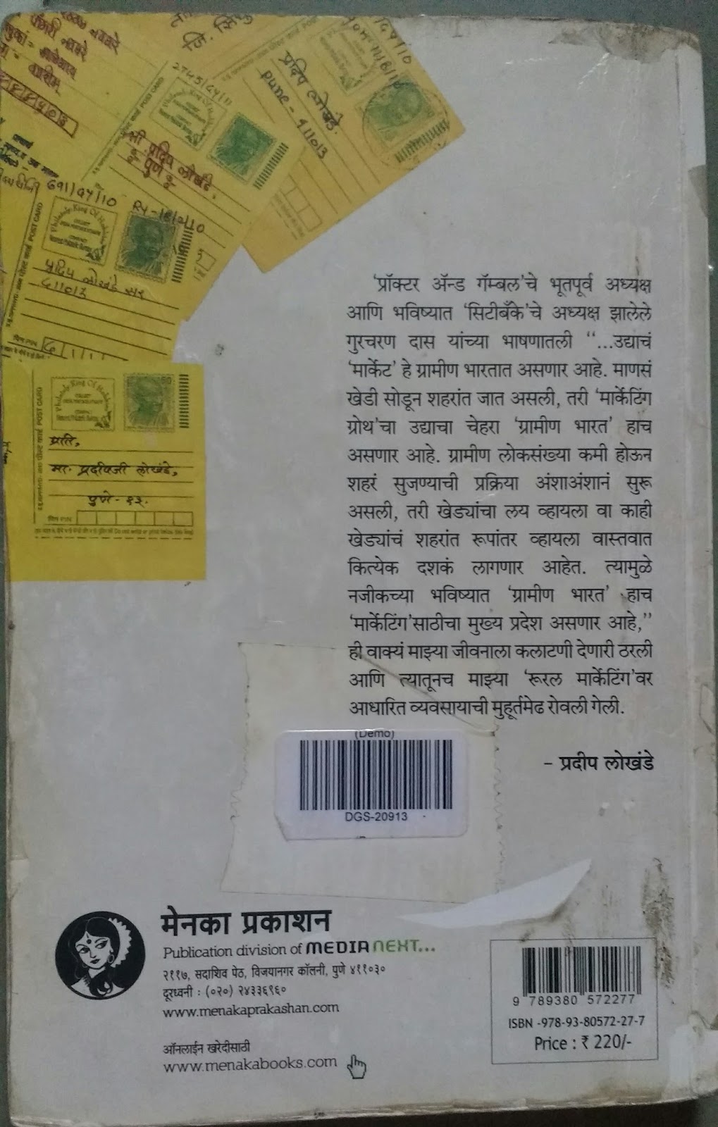 एकूण हे पुस्तक म्हणजे एका जिद्दी (चांगल्या अर्थी) माणसाची यशोगाथा, ग्रामीण भागाचा मनात डोकावण्याची संधी, मार्केटिंगच्या दुनियेची सफर आणि ग्रामीण भागात दडलेल्या संधींची झलक असा बहुपेडी वैचारिक दस्त ऐवज आहे. नक्की वाचा.
