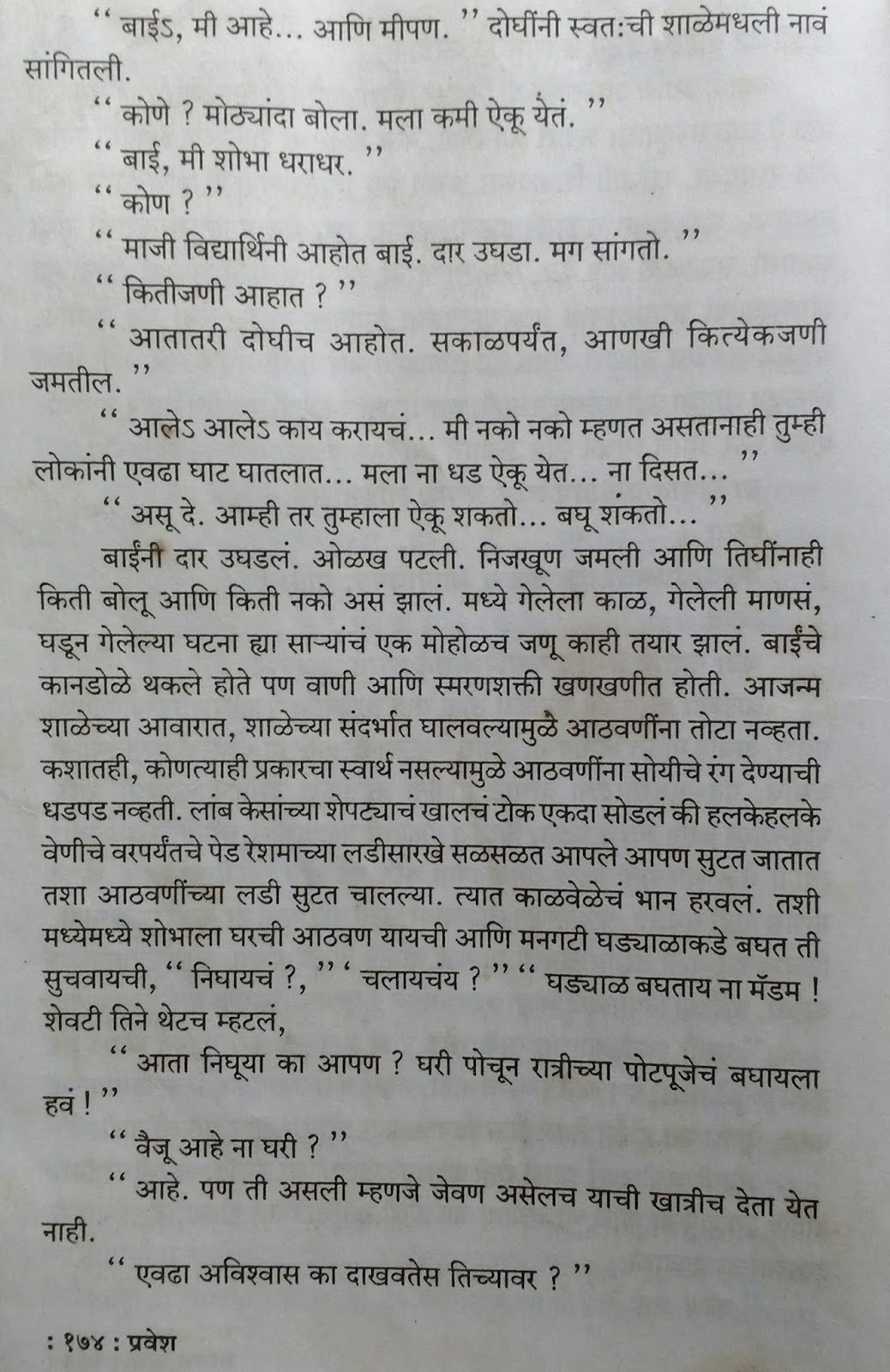 उदा. कथेतल्या या वृद्ध शिक्षिकेशी त्यांच्या माजी विद्यार्थिनींचा संपर्क बघून तुम्हालाही तुमच्या अशा सोज्वळ, विद्यार्थिप्रिय शिक्षकाची आठवण येईल.