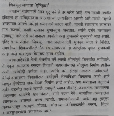 ज्यांनी पुलंचं फक्त विनोदी लिखाण वाचलं आहे त्यांना हे वैचारिक लिखाण पुलंच्या व्यक्तिमत्त्वाचा नवा पैलू दाखवेल. मलाही पुन्हा एकदा प्रकर्षाने जाणवलं की या लिखाणामगे एक संवेदनशील, सर्वसमावेशक, निखळ गुणग्राही व्यक्ती आहे. त्यांचं म्हणणं आहे की प्रत्येक व्यक्तीने आनंद घेत आनंद देत जगलं पाहिजे. धर्म-जात-भाषा-देश-वय-लिंग यांच्या बेड्या घालून घेऊन कुरूप, खुरटं, किरकिरं न जगता “जे जे उत्तम उन्नत महन्मधुर ते ते” शिकण्याचा, बघण्याचा, ऐकणयाचा, खाण्याचा आनंद घेतला पाहिजे, आनंद दिला पाहिजे !