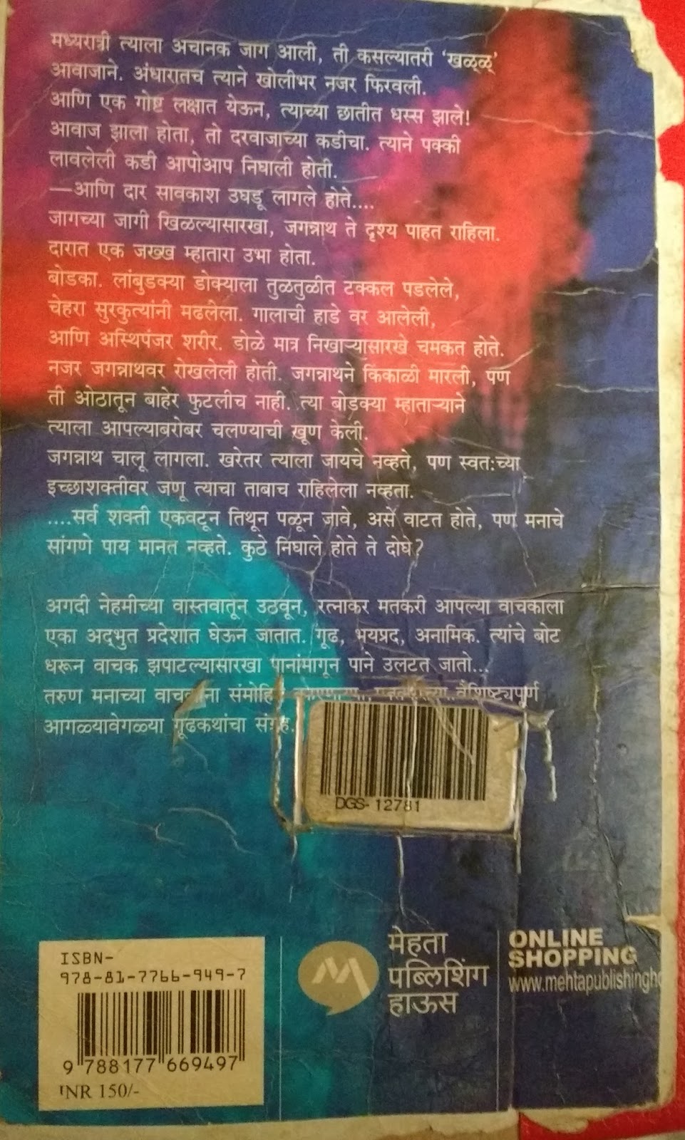 तुम्हाला अशा कथा वाचायला आवडत असतील तर पुस्तक आवडेलच. आधी अशा कथा नसतील वाचल्या तरी वाचा, कदाचित नवी आवड निर्माण होईल. आणि भीती वाटत असेल तर… किती वेगवेगळ्या प्रकारे भीती वाटू शकते याचा अनुभव घ्या. मी पण शक्यतो भयकथा, गूढकथा वाचत नाही. न जाणो एखादी भीती डोक्यात बसली तर, तसले काही मनाचे खेळ सुरू झाले तर.. या भीतीनेच वाचत नव्हतो. पण सगळ्या प्रकारचं वाचलं पाहिजे या विचारातून पुस्तक हातात घेतलं. वाचायला मजा आली. थोडा वेळ डोक्यात ते विचार राहतात हे मात्र खरं.