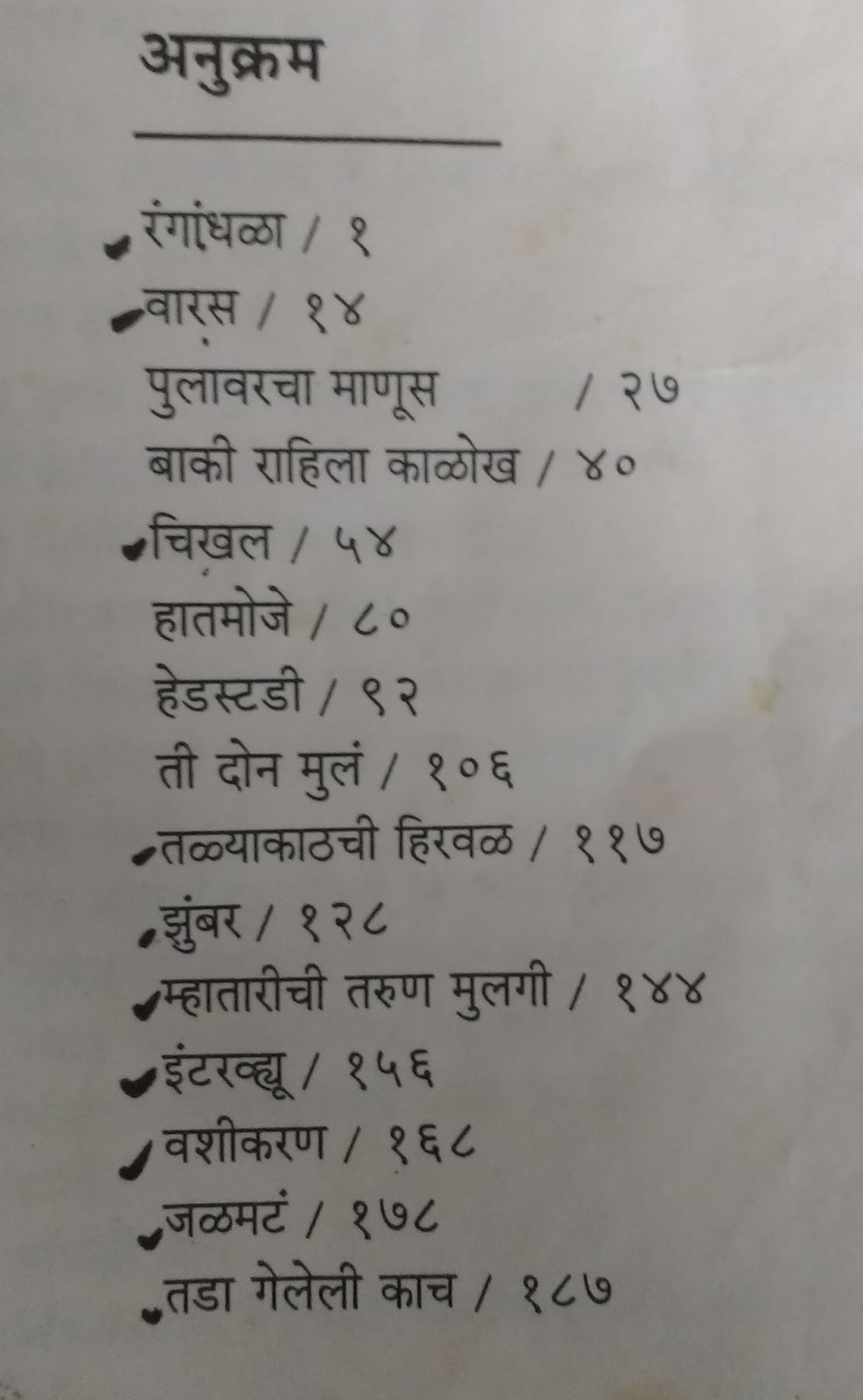 कथा संग्रहाबद्दल लिहिताना थोडी पंचाईत होते. प्रत्येक कथा वेगळी असते. त्यामुळे एक-दोन कथांबद्दल लिहिले म्हणजे सगळ्या पुस्तकाबद्दल लिहिले असे होत नाही. प्रत्येक कथेबद्दल लिहिणेही योग्य वाटत नाही; कारण ते लिहिताना कथा काय आहे हे अप्रत्यक्षपणे सांगितले जाते. म्हणजे भावी वाचकाचा रसभंग व्हायचा आणि कलाकृती विनापरवाना तशीच सादर केल्याचा औचित्यभंग. त्यात जर गूढकथा असतील तर कथा काय आहे हे सांगणं म्हणजे गूढ फोडल्यासारखंच व्हायचं. म्हणून थोडक्यात आणि मोघम लिहितो आहे. कथांचे कुठले प्रकार दिसले ते सांगतो. म्हणजे पुरेशी कल्पना येईल.